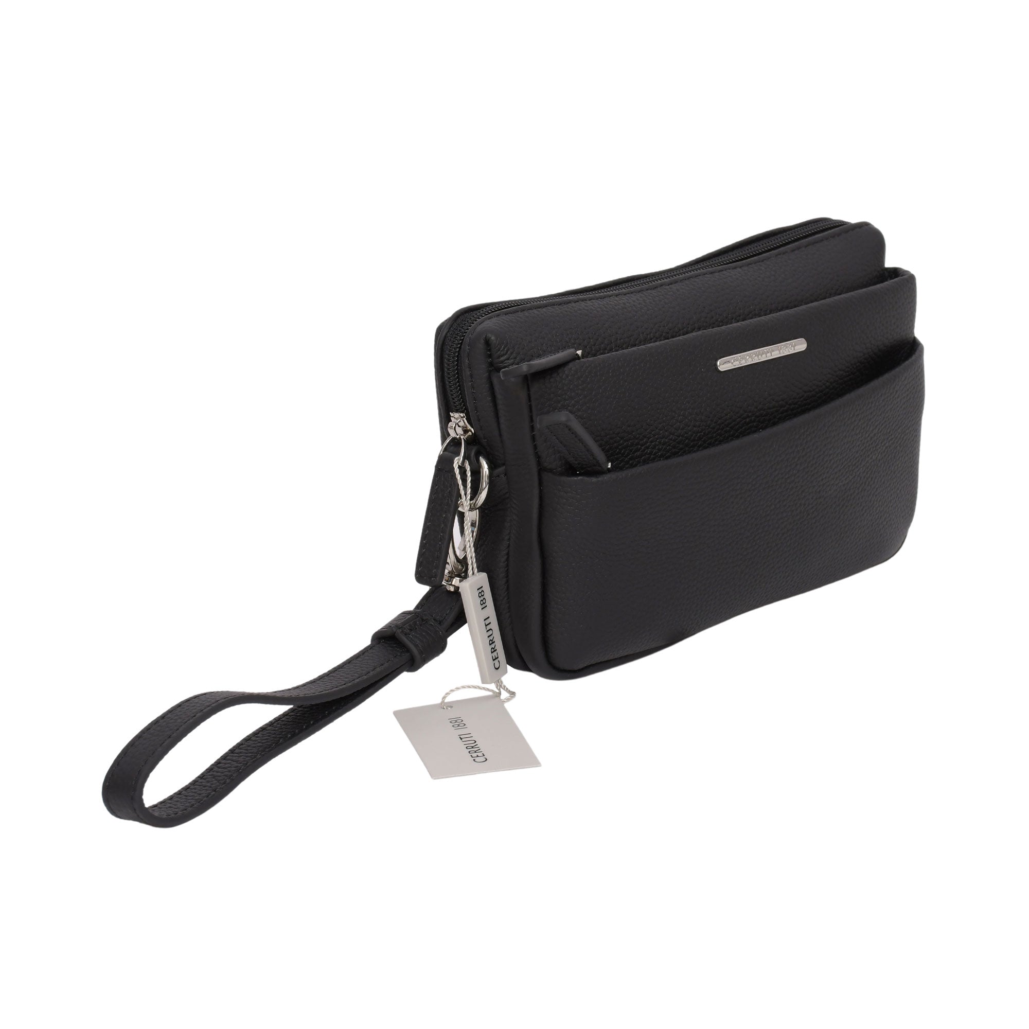 The sophisticated design of the Cerruti Men's Black Clutch Bag ensures that you will stay stylish. The exterior of the bag is excellent quality leather that adds durability to ensure that your items stay secure. A comfortable wrist strap is included making it easier to carry your items everywhere you go. The bag is designed to provide maximum organization and practicality. An internal pocket is equipped for quick access to all your important items. The main zippered closure keeps your items safe with a secure fit. The Cerruti pouch is also water-resistant, perfect for outdoor use. The black hue of this Cerruti pouch will easily blend into your daily style. This classic and timeless look will offer the perfect touch for a night out on the town. Bring quality and style along with you everywhere you go with the timeless Cerruti Men's Black Clutch Bag. SPECIFICATIONS