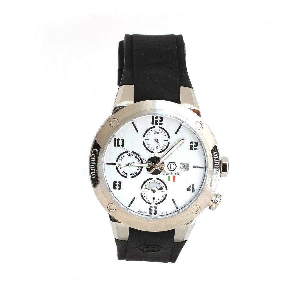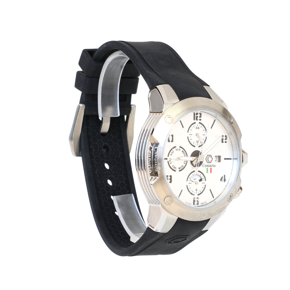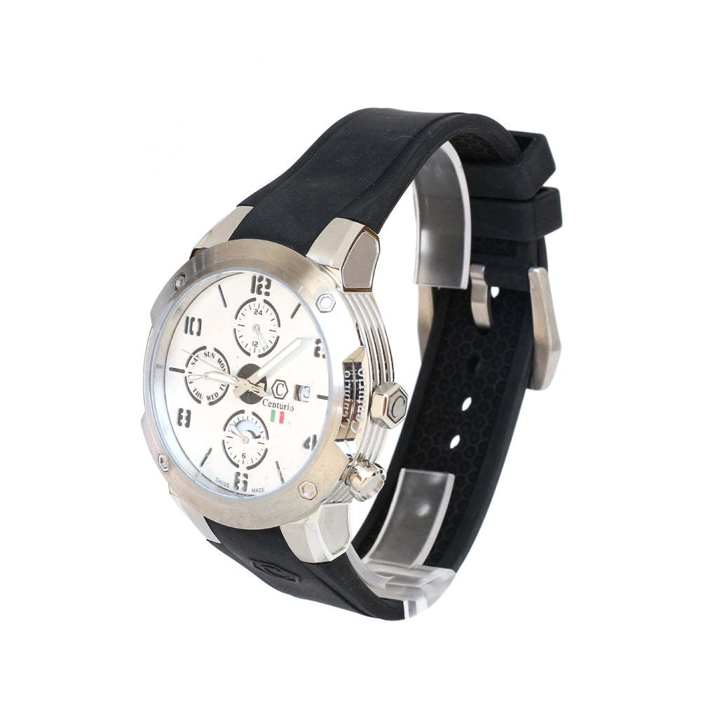 Centurio watch men's stainless steel case and dial s/s bezel leather strap (croco pattern) multi function