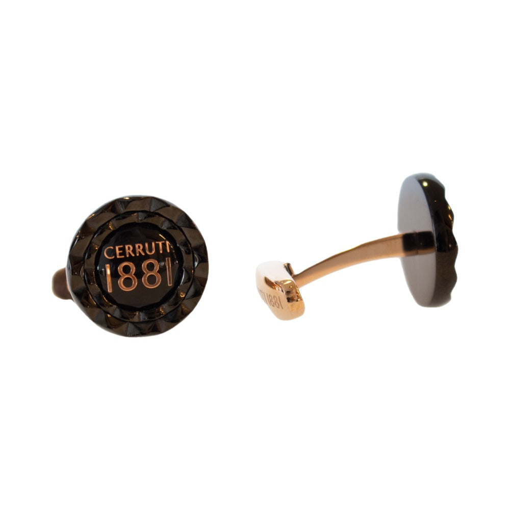 Cerruti cufflink ip black rosegold up label with transparent epoxy & rosegold logo