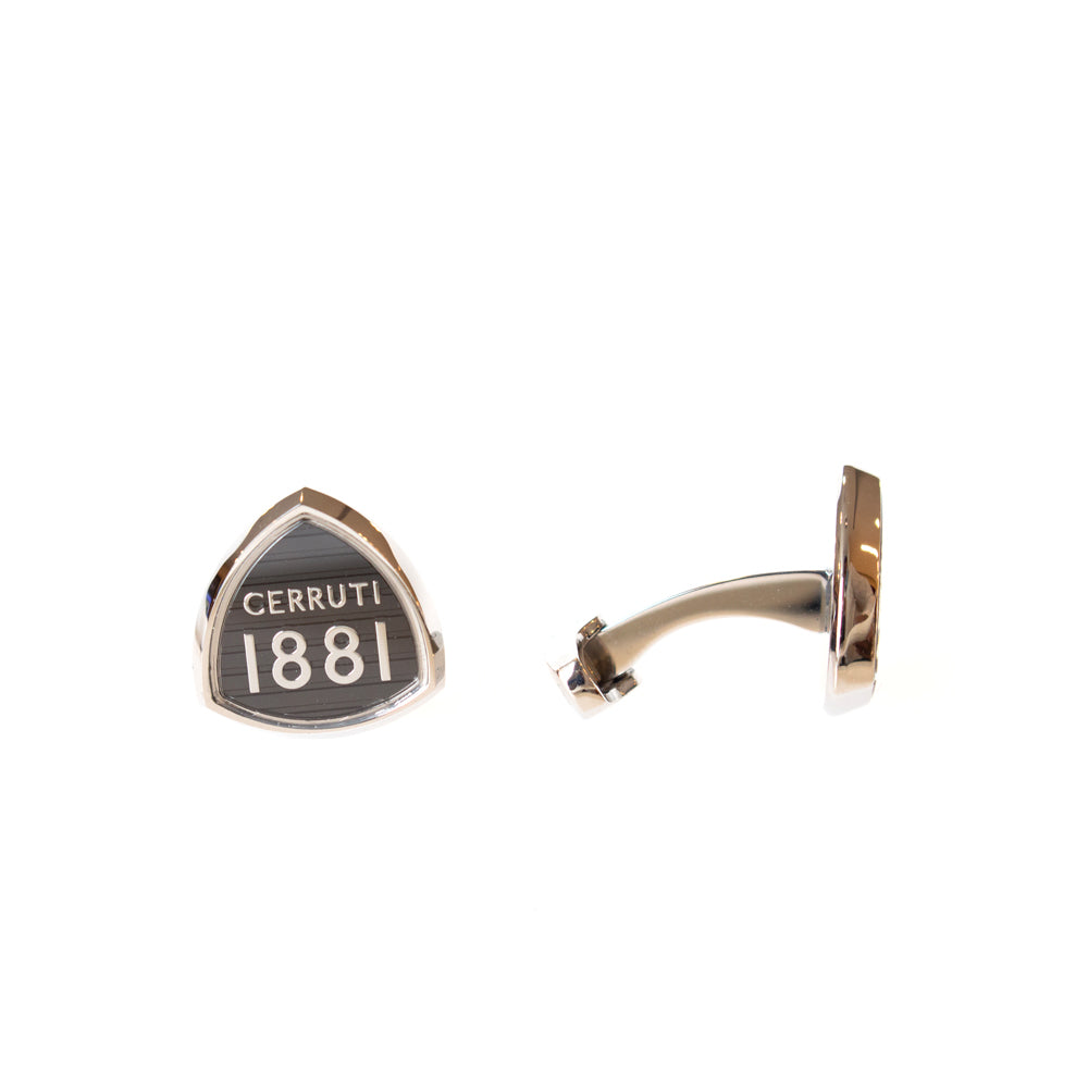 Cerruti cufflinks stainless steel plated & black matte finish with silver plated logo