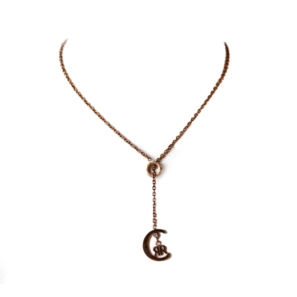 Cerruti ladies necklace rosegold with necklace c dangling pendant & rr logo and stones