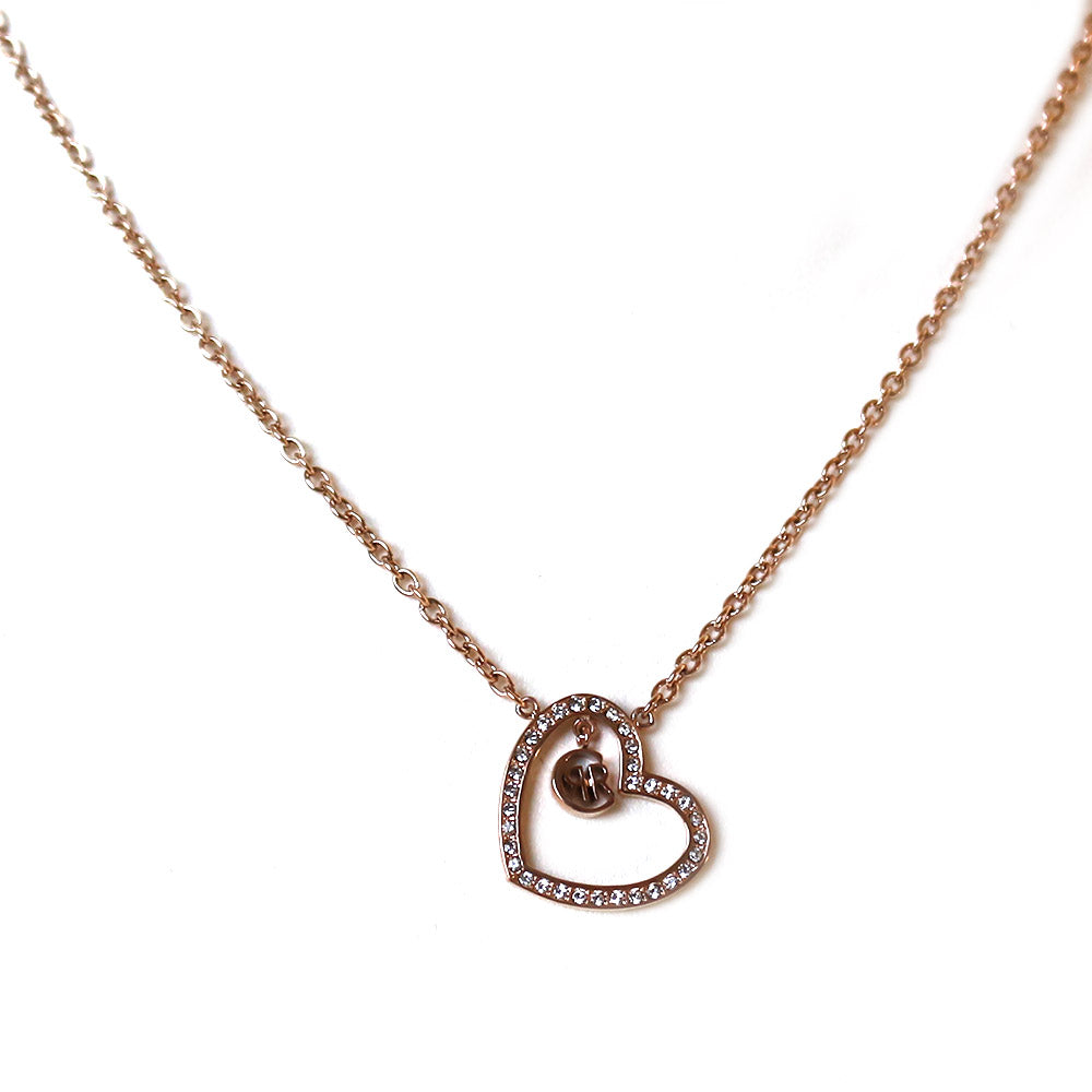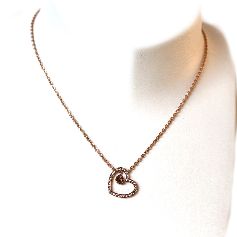 Cerruti ladies necklace rose gold plated chain with heart shape swarovski stone & rr logo pendant