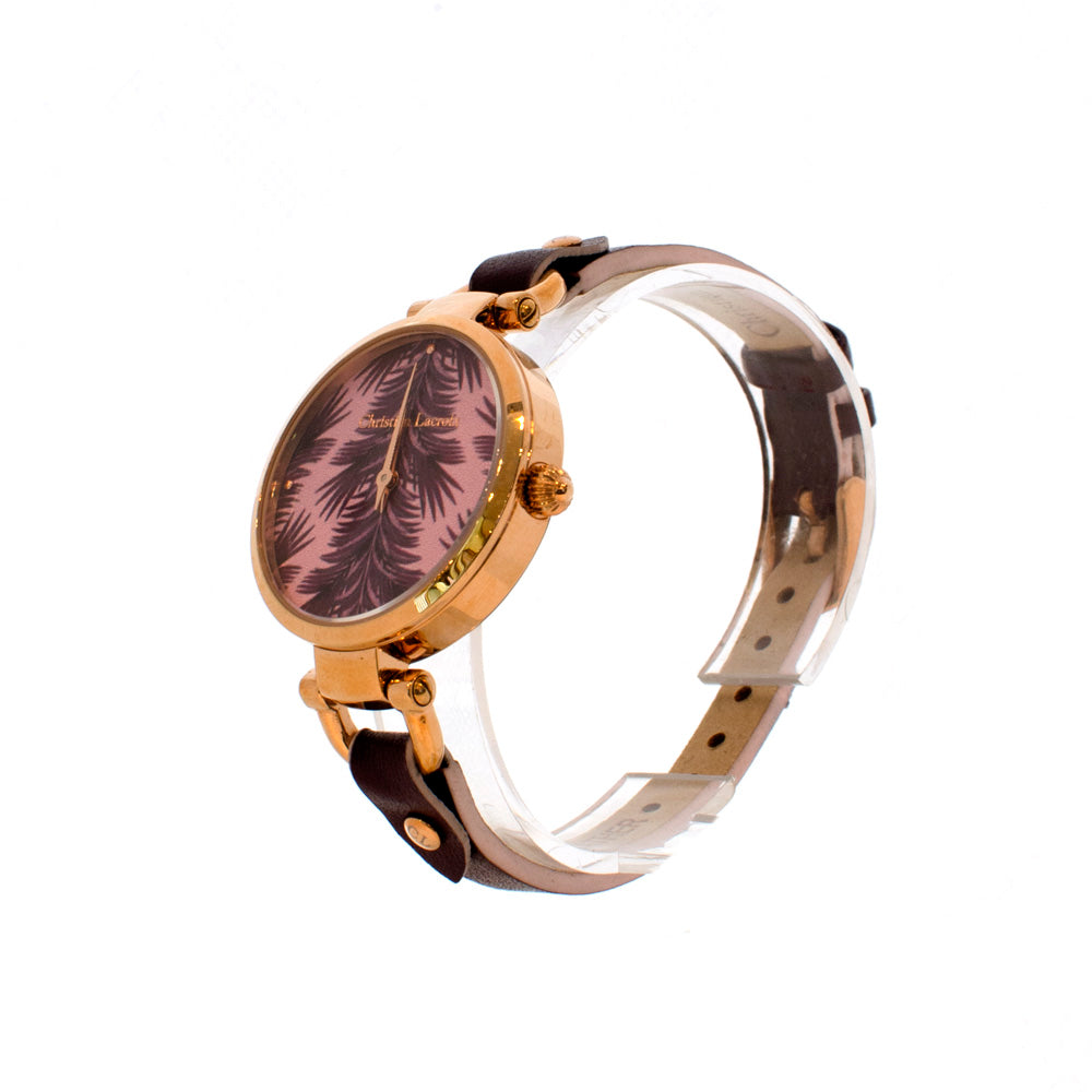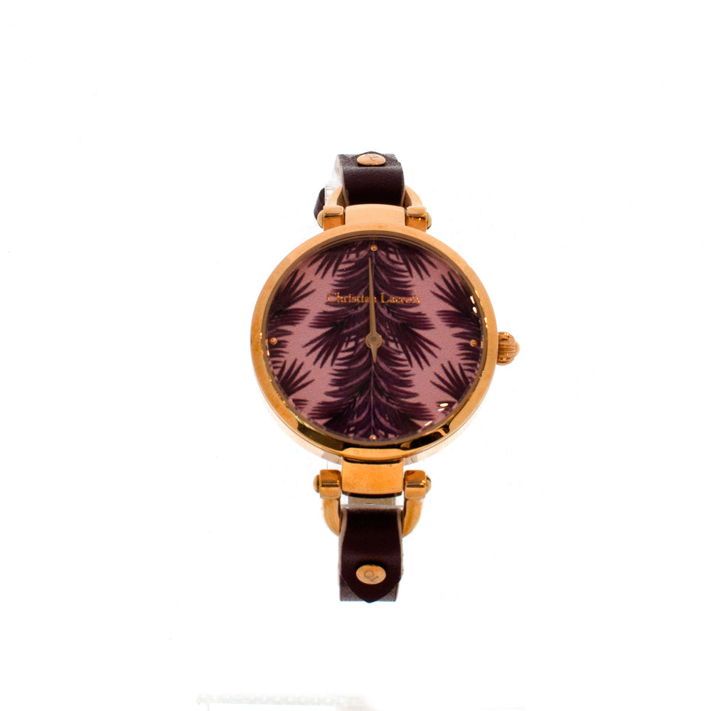 Christian lacroix ladies watch goya collection, rosegold case, dial with leaf print, maroon strap