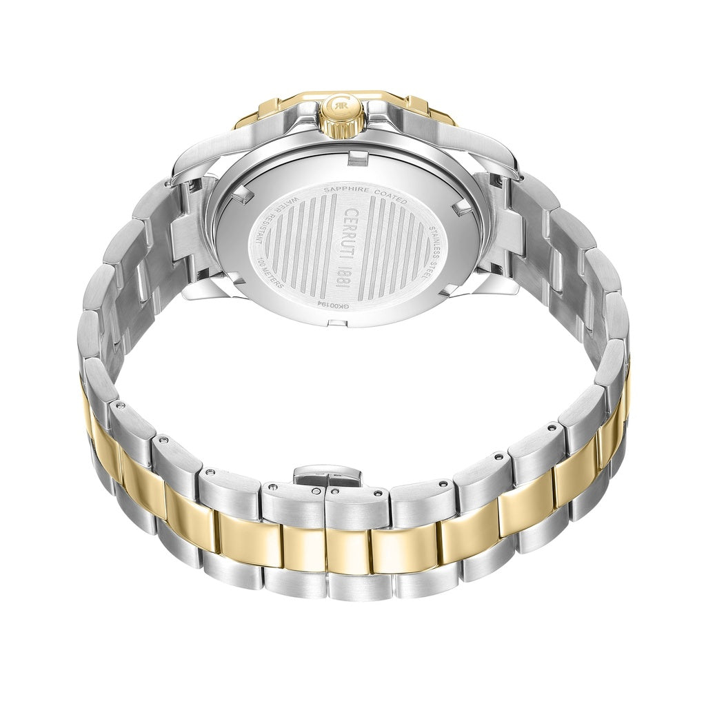 The Cerruti 1881 Vallelaghi watch is a sporty and stylish timepiece with a silver dial and a two-tone stainless steel bracelet. It combines classic design elements with modern touches, creating a versatile watch suitable for various occasions.