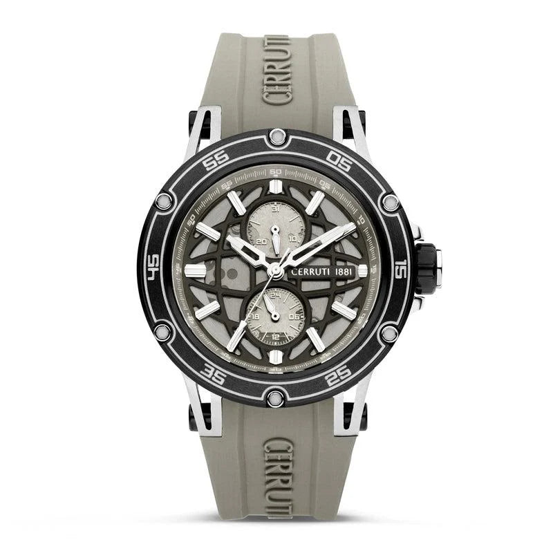 Cerruti 1881 Velletri Gents Brushed Smoked Transparent Dial Grey Silicon Strap Watch