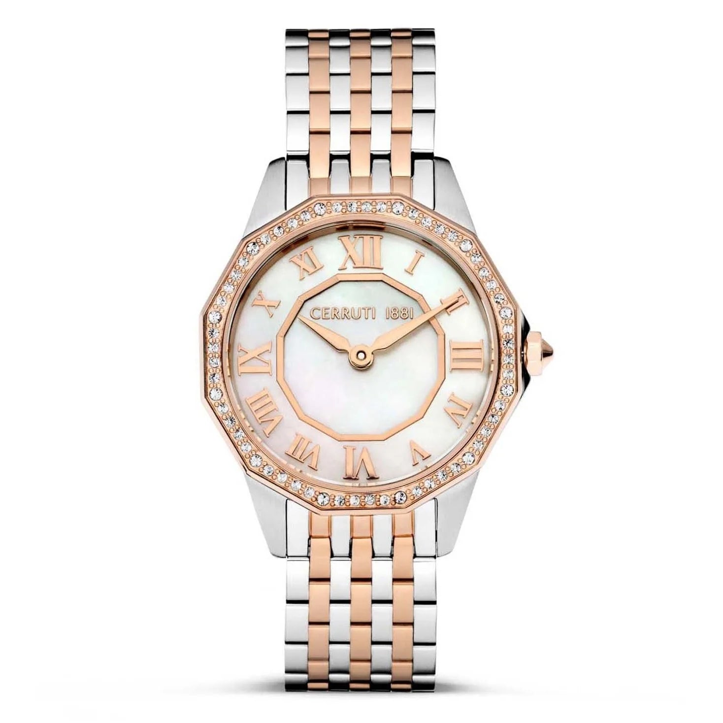Cerruti 1881 Jesina Ladies White MOP Dial Stainless Steel Silver Rose Gold Watch