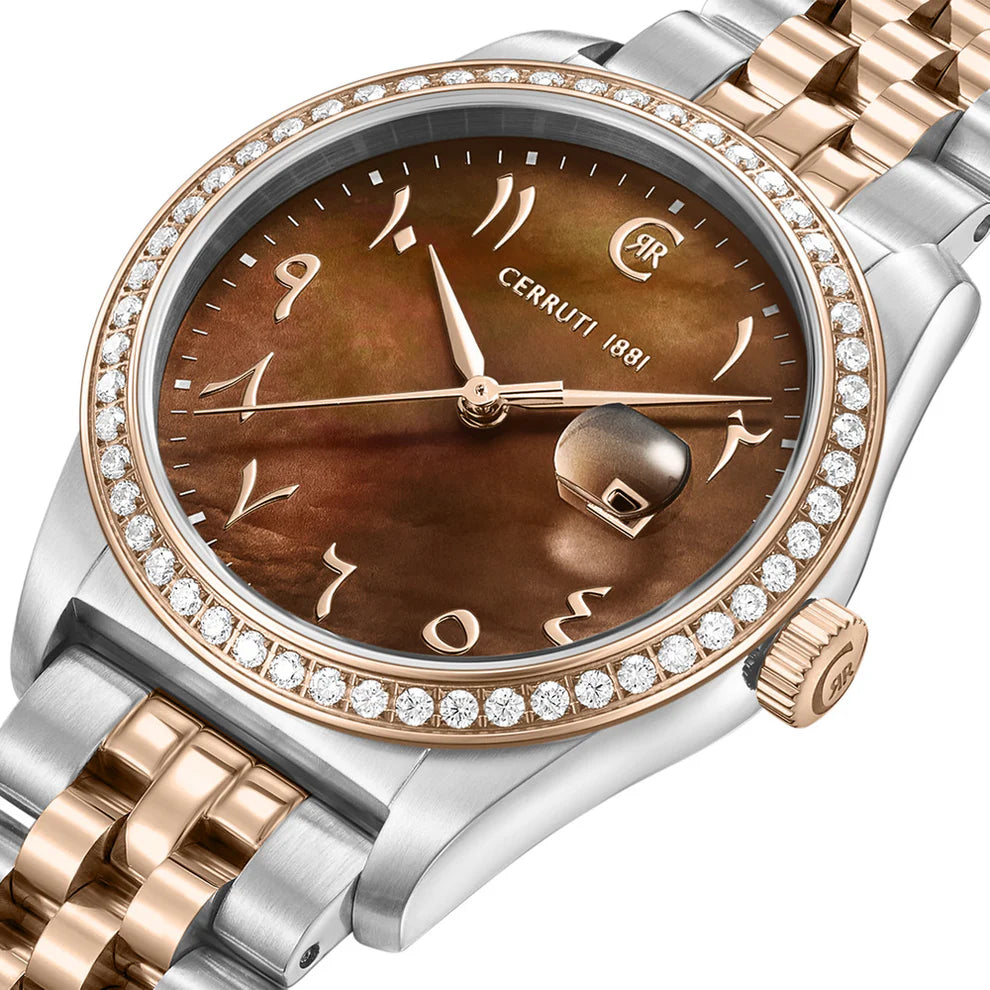 Cerruti 1881 Baccio Ladies Brown MOP Dial Stailess Steel Silver Rose Gold Watch