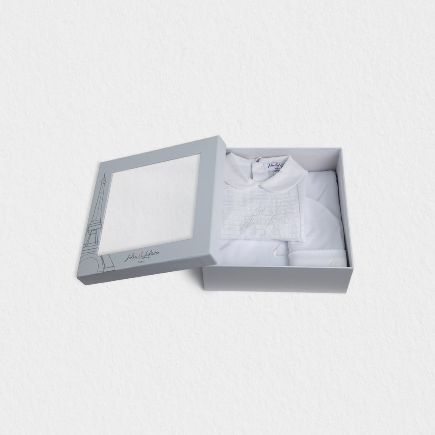 Jules & Juliette Paris CLASSY Baby White Gift Set of 3 pcs, Pyjama & Blanket & Hat