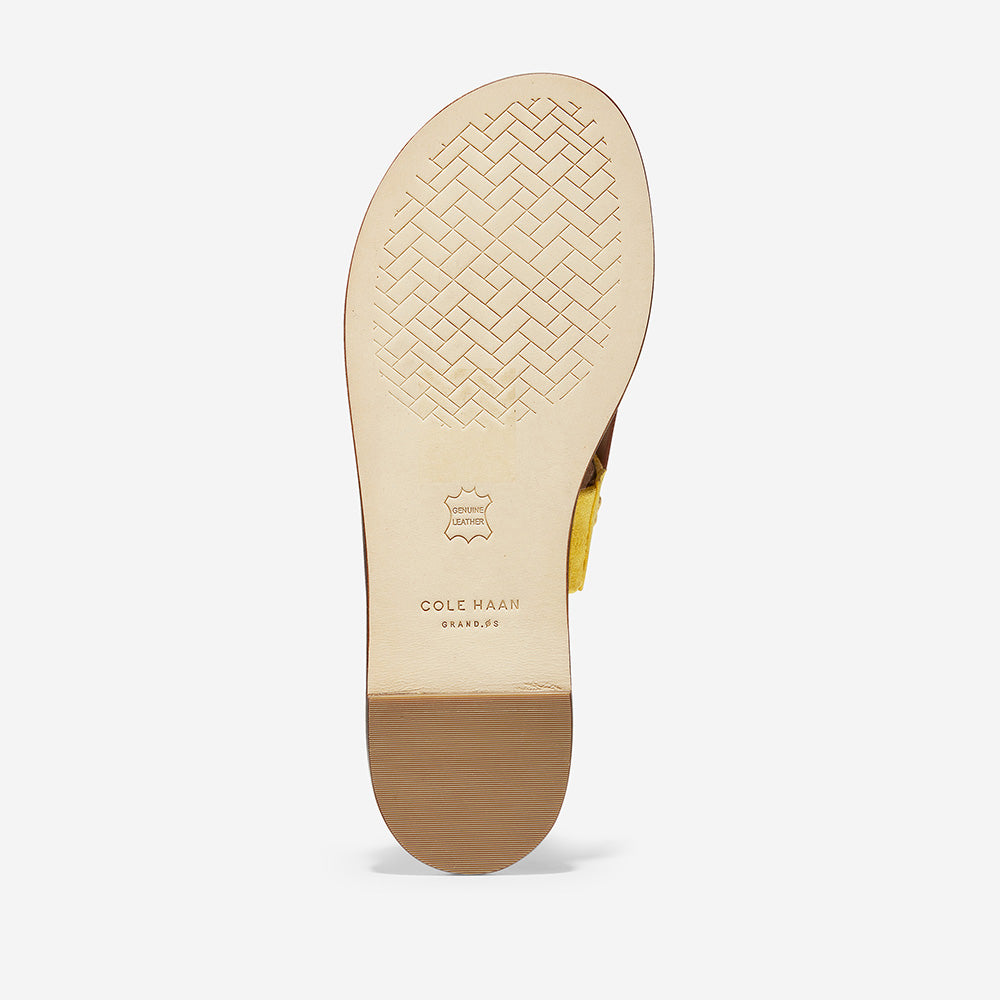 Cole Haan Anica Thong Sandal Bright Yellow Straw/Pecan Leather/Bright Yellow Size 6.5