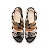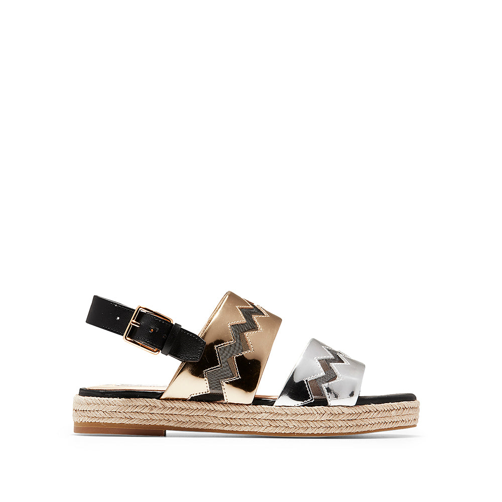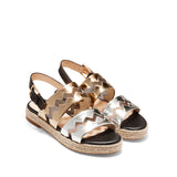 Cole Haan Emilia Espadrilles Sandal Black Leather Gold/Silver