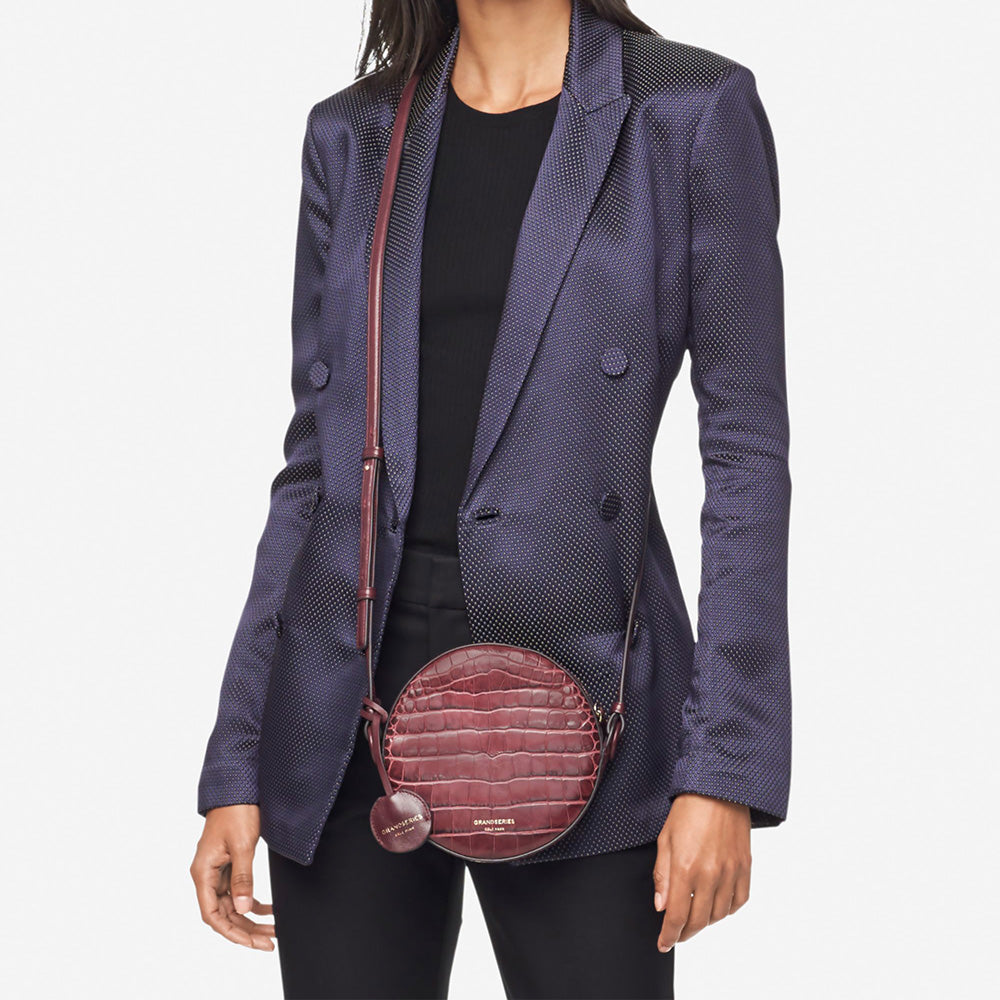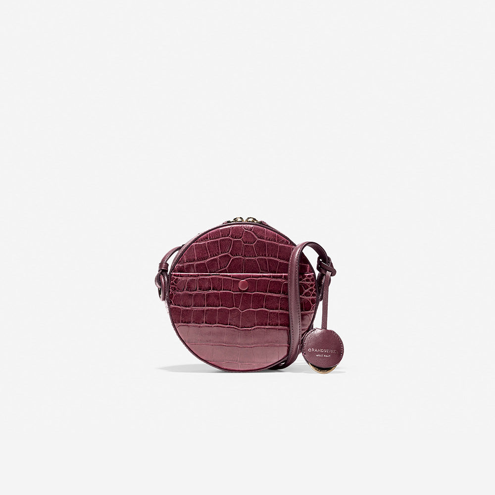 Cole Haan Grand Ambition Circle Crossbody Winetasting Burgundy Embossed Croc One Size