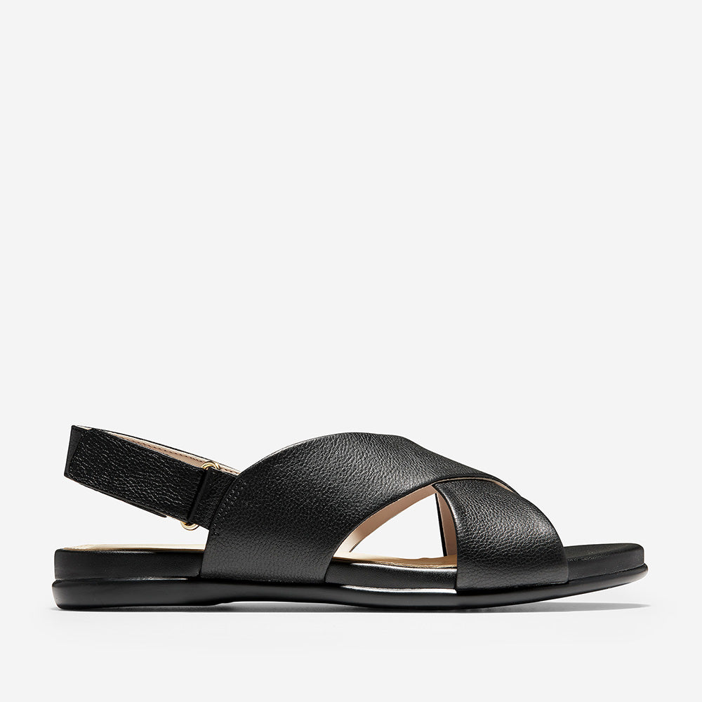 Cole Haan Grand Ambition Flat Sandal Black Tumbled Leather/Black