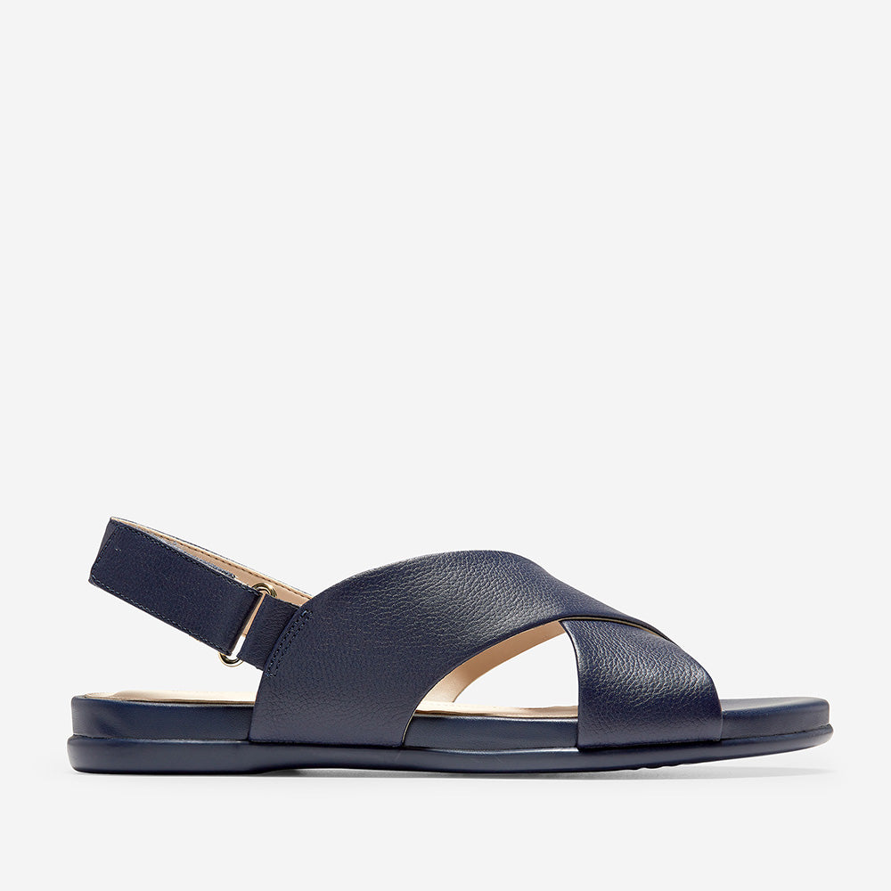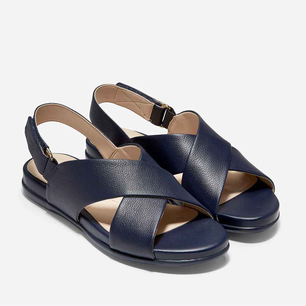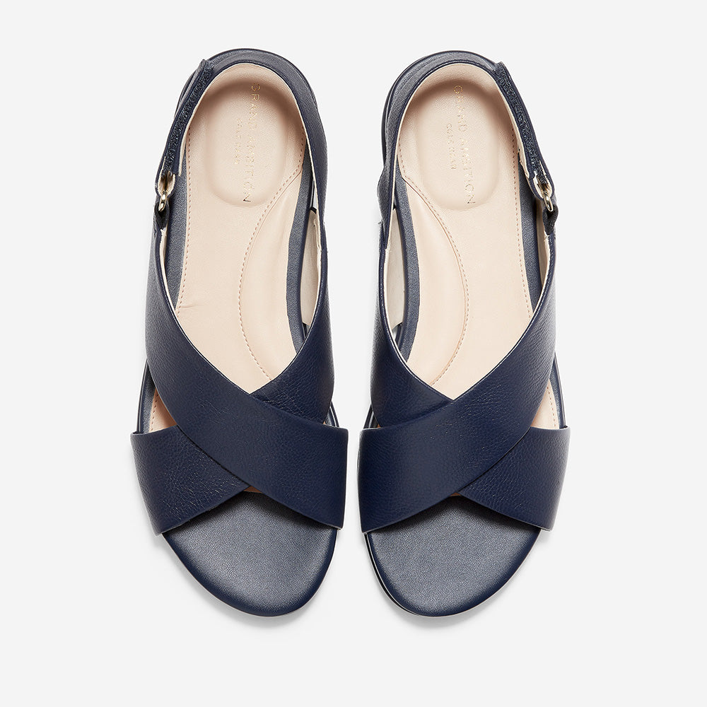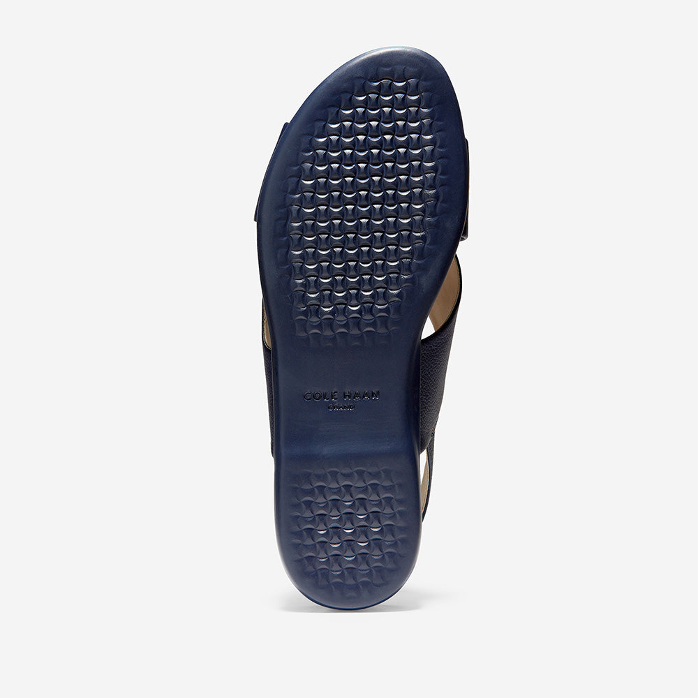 Cole Haan Grand Ambition Flat Sandal Marine Blue Leather/ Tonal