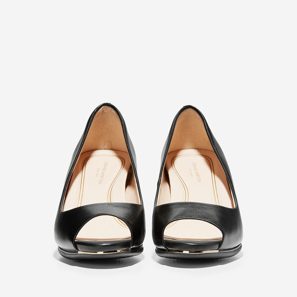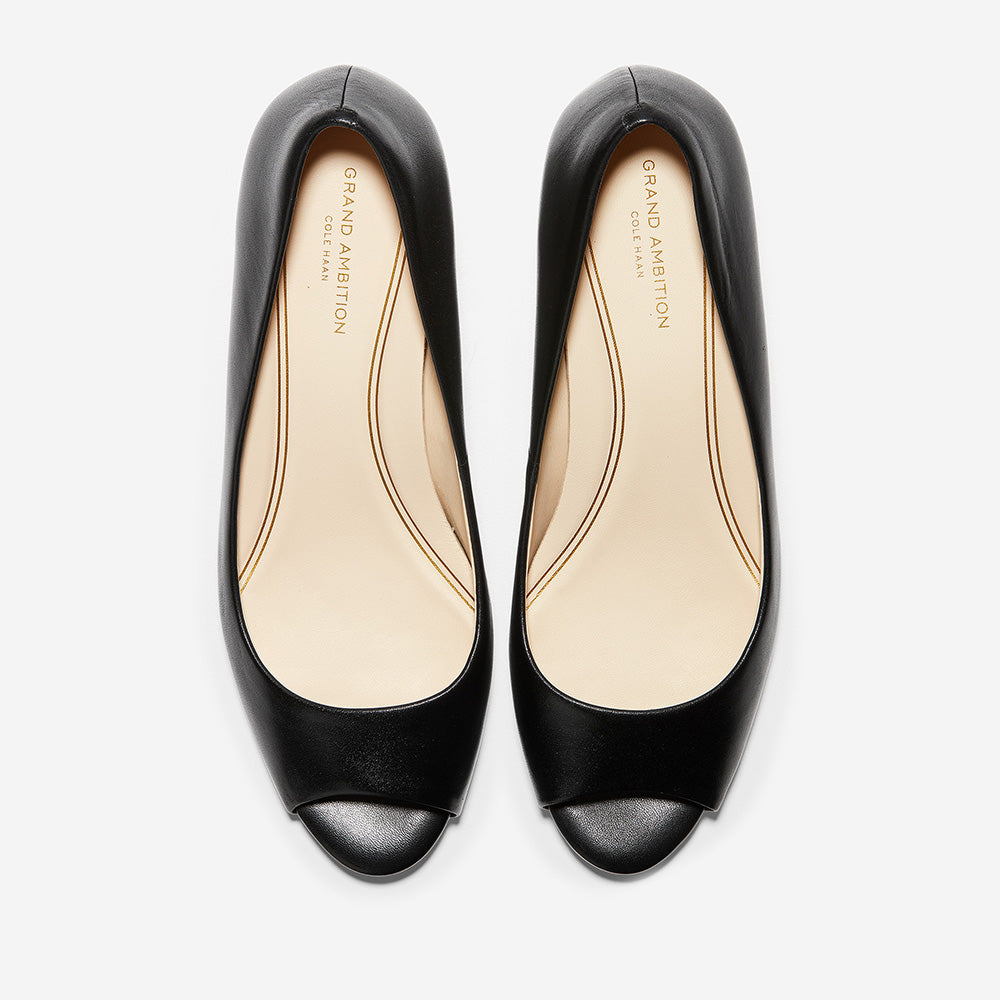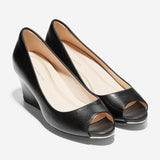Cole Haan Grand Ambition Open Toe Wedge (55mm) Black Leather