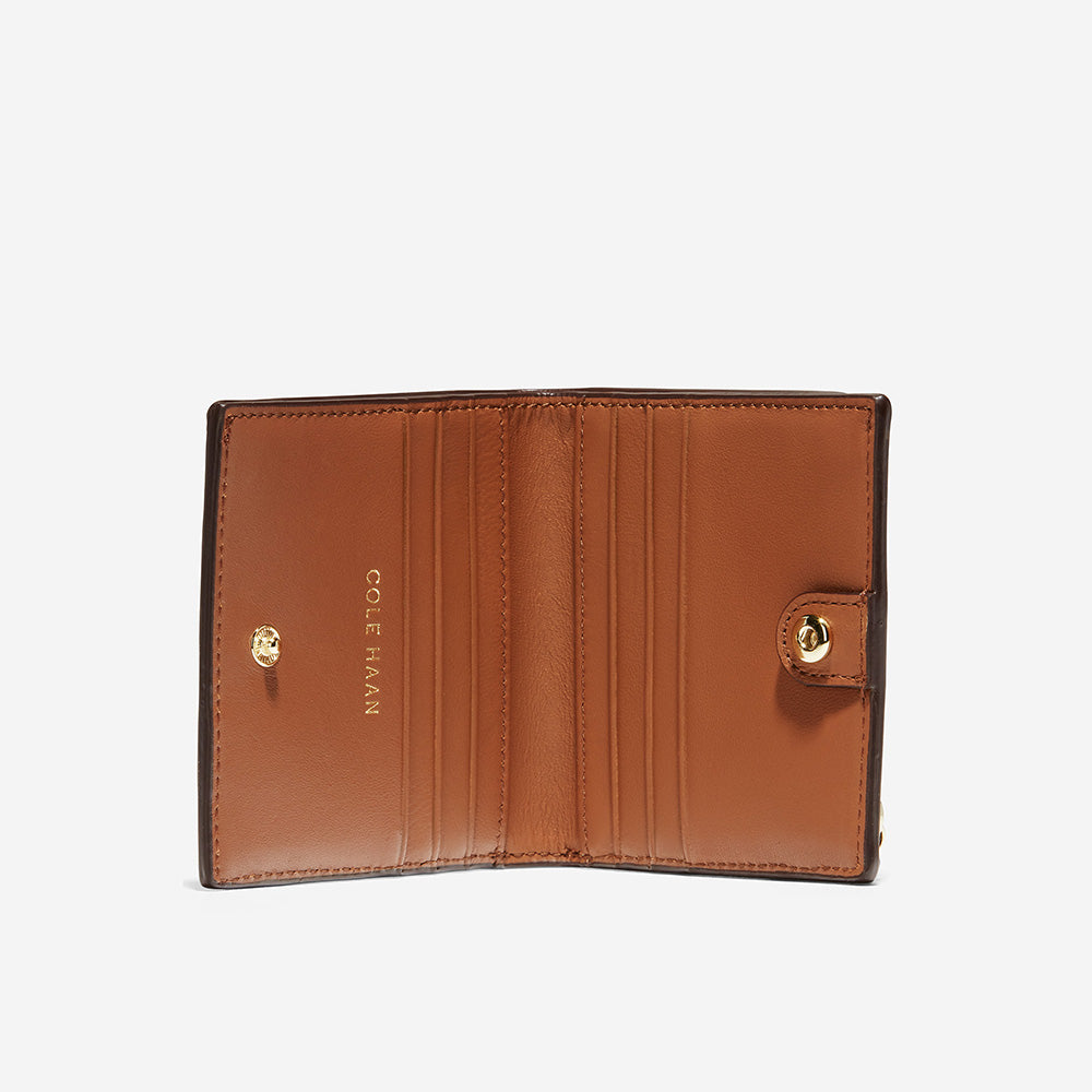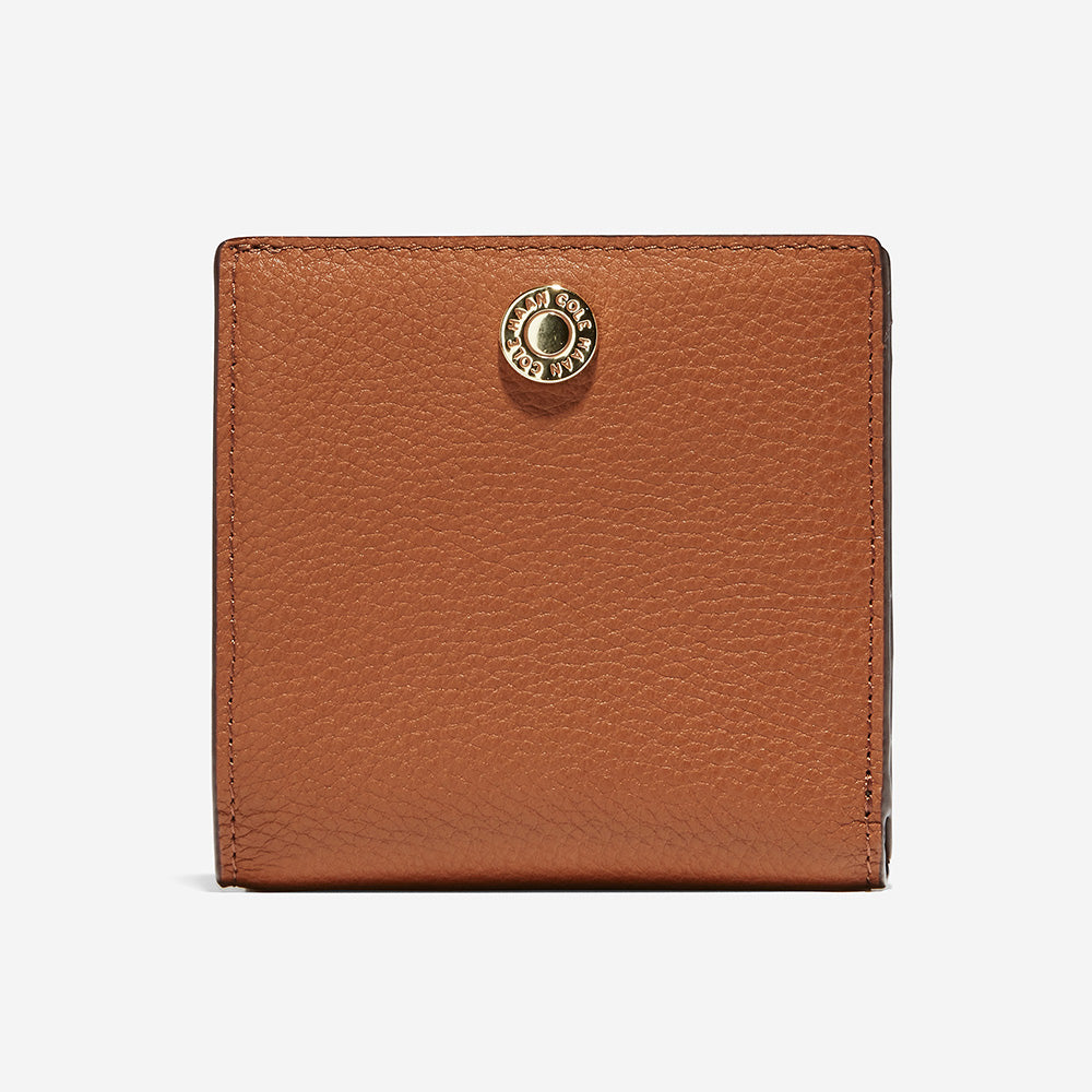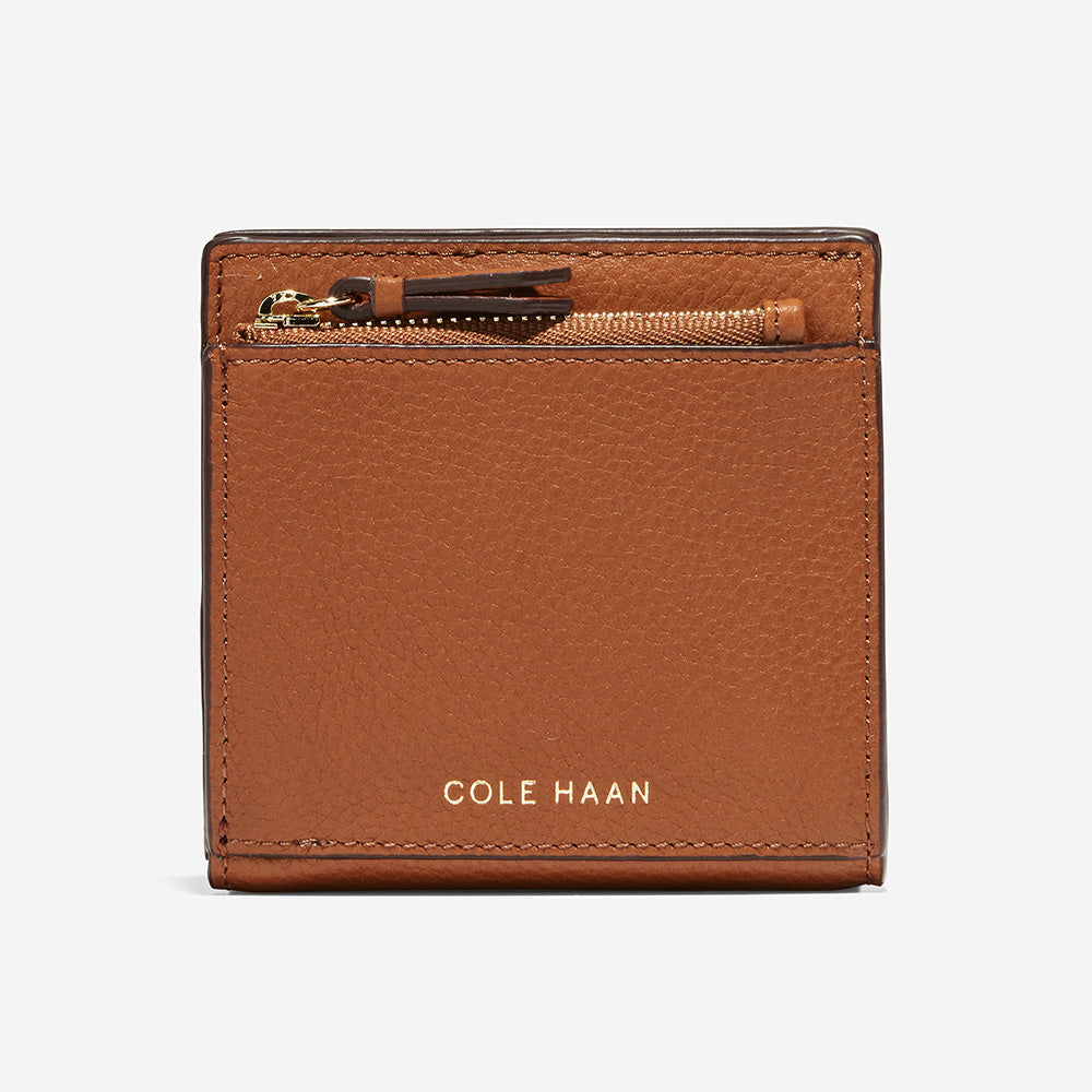 Medium Wallet In Pebbled Leather. Lt Gold Hardware. 4"L X 4"W. Imported