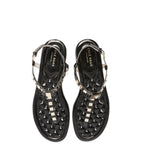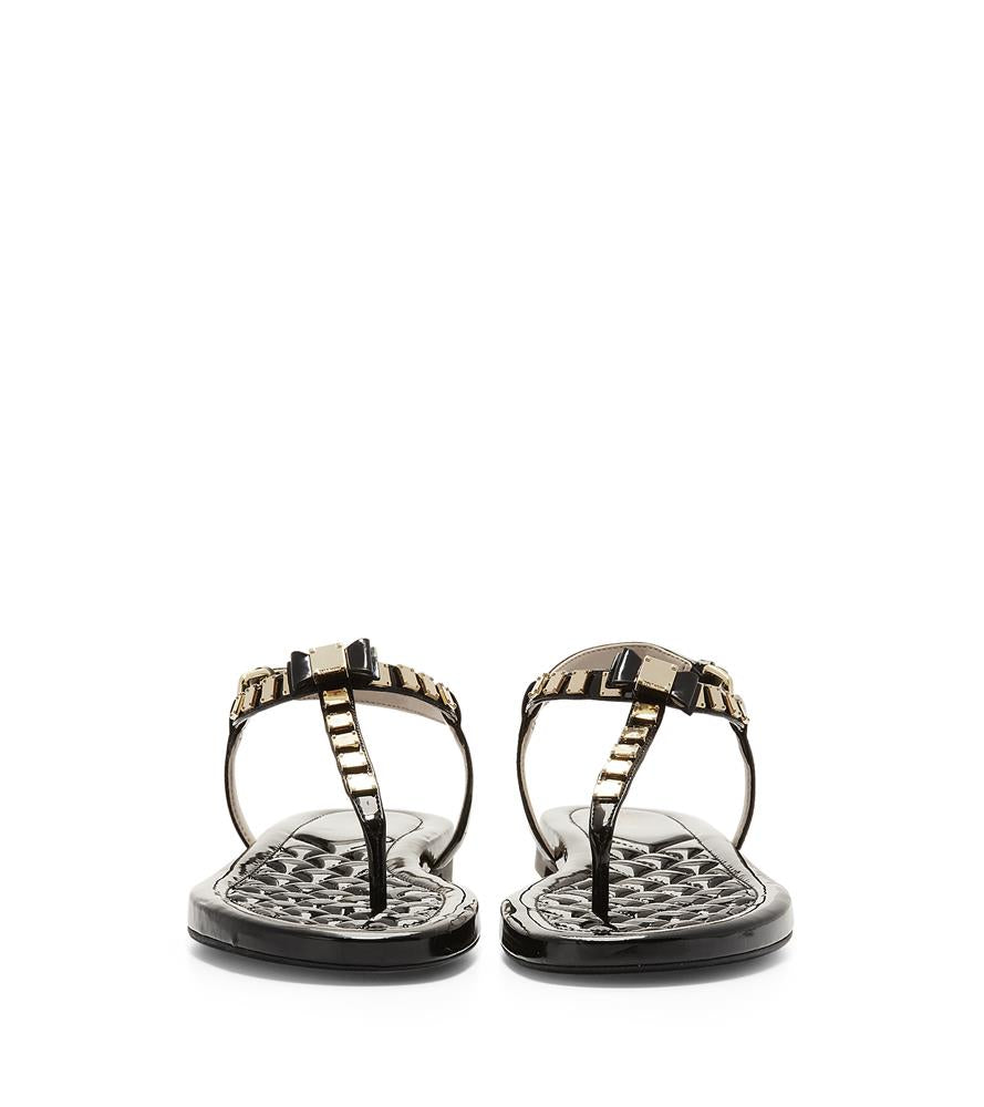 * Synthetic Patent Or Specchio Upper With Bow, Hardware, And Stud Detail.