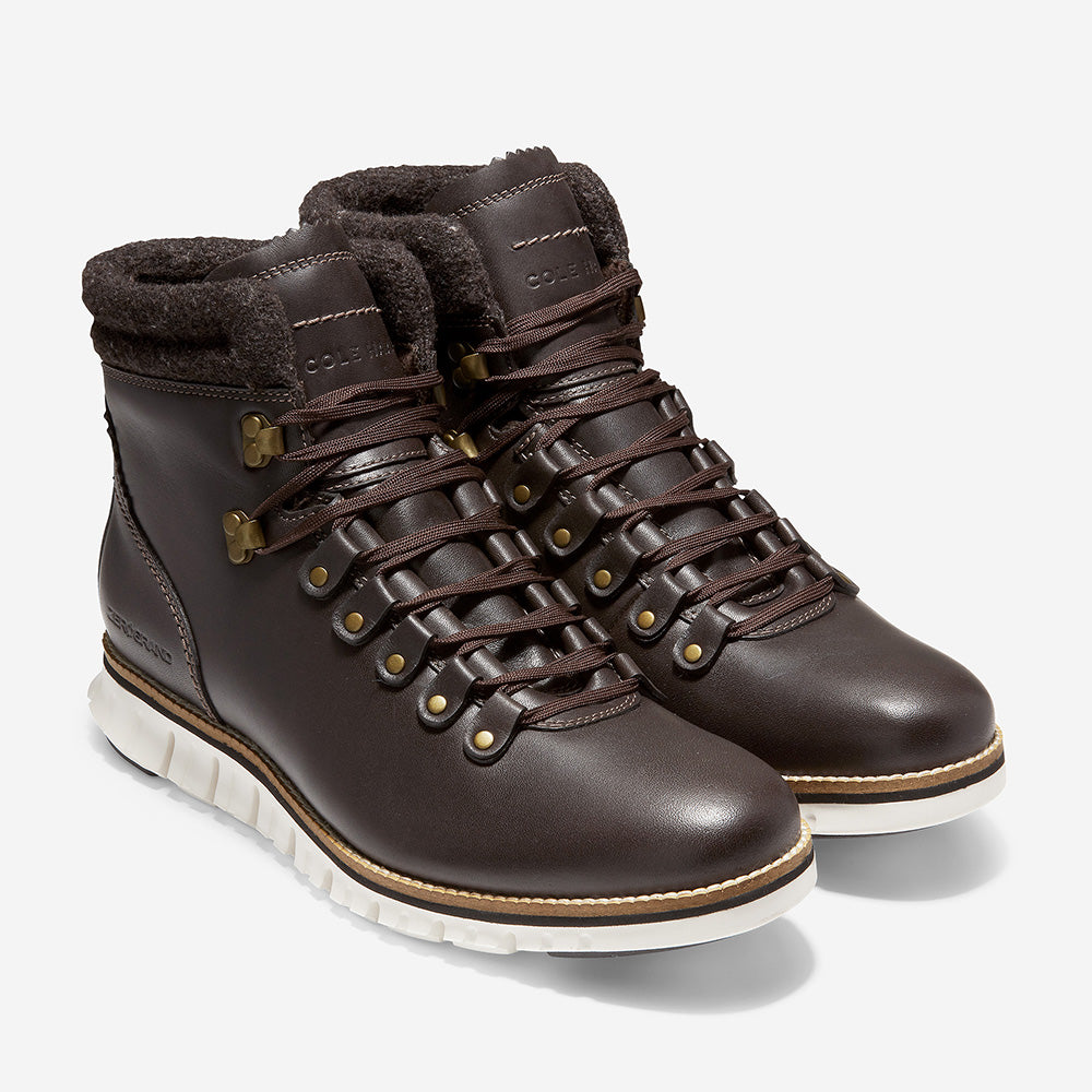 Cole Haan ZERØGRAND Hiker Water Proof Brown Leather/Wool/Ivory