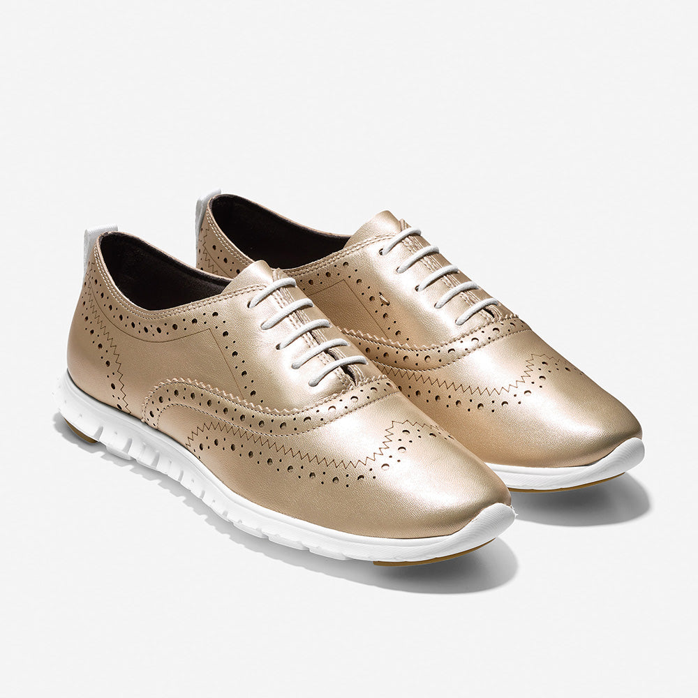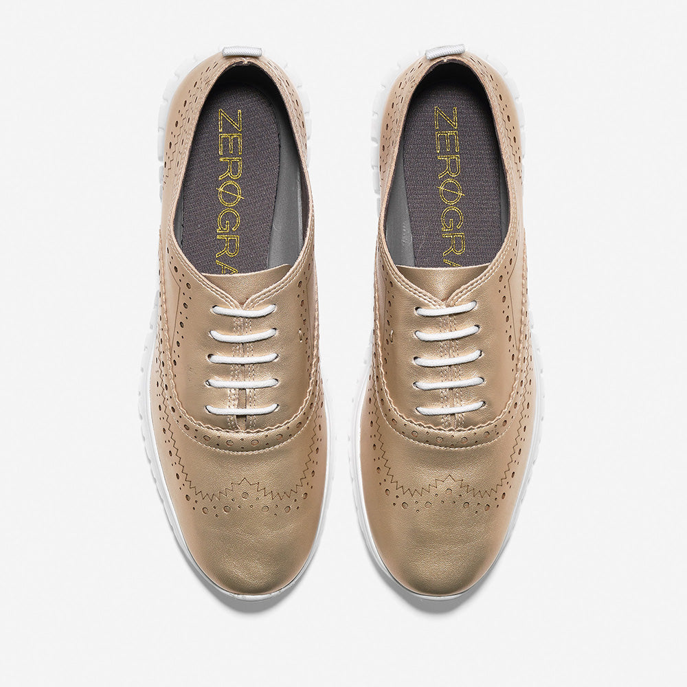 Cole Haan ZERØGRAND Wingtip Oxford Closed Hole Gold Metallic