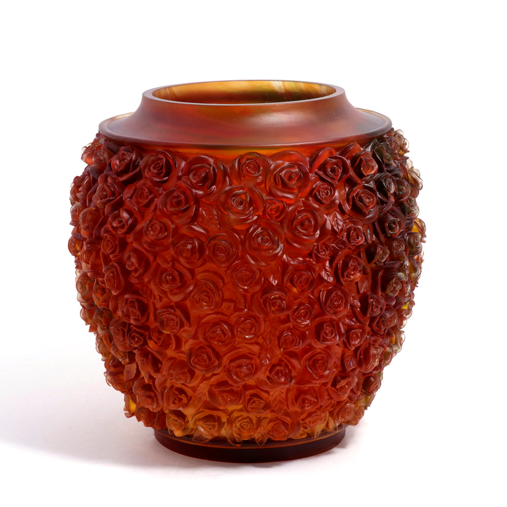 Cristal De Paris Les Roses Vase Amber