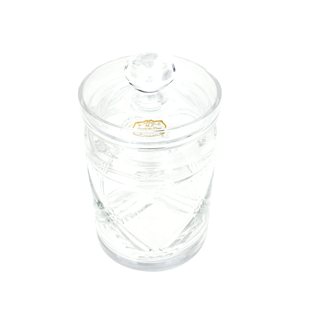 This candy box brings joy chic round hand cut crystal design combines with exquisite diamond-like cuts all around the base will make guests break their diets and dig in for a morsel of the sweet stuff makes the perfect accessory to fancy dinner parties .