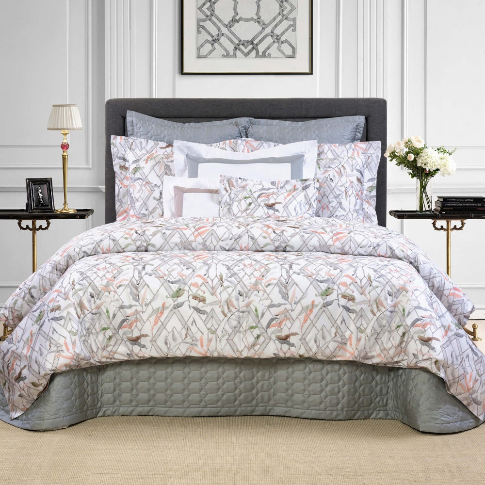Gazebo Set by Dea is a luxurious collection woven by Italian artisans. Available in Bedspread , shams, sheets and cases. Made from 100% yarn-dyed sateen Egyptian Cotton. Consist of 5 Pcs,Bed Spread , Sheet Set & Pillow Cases