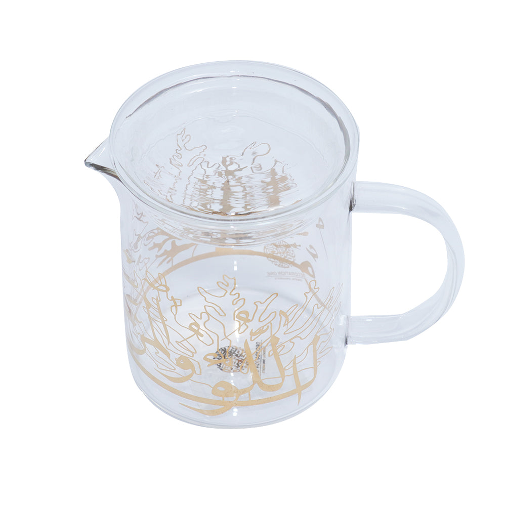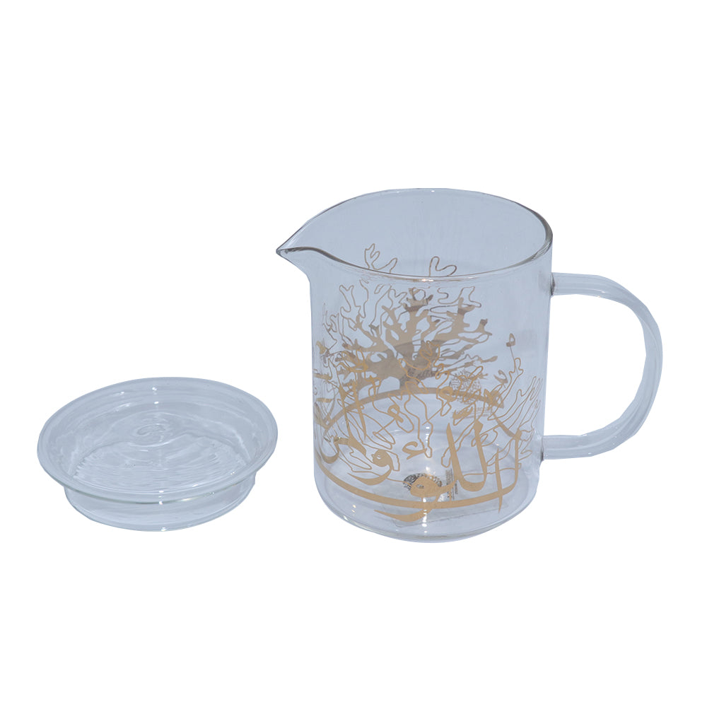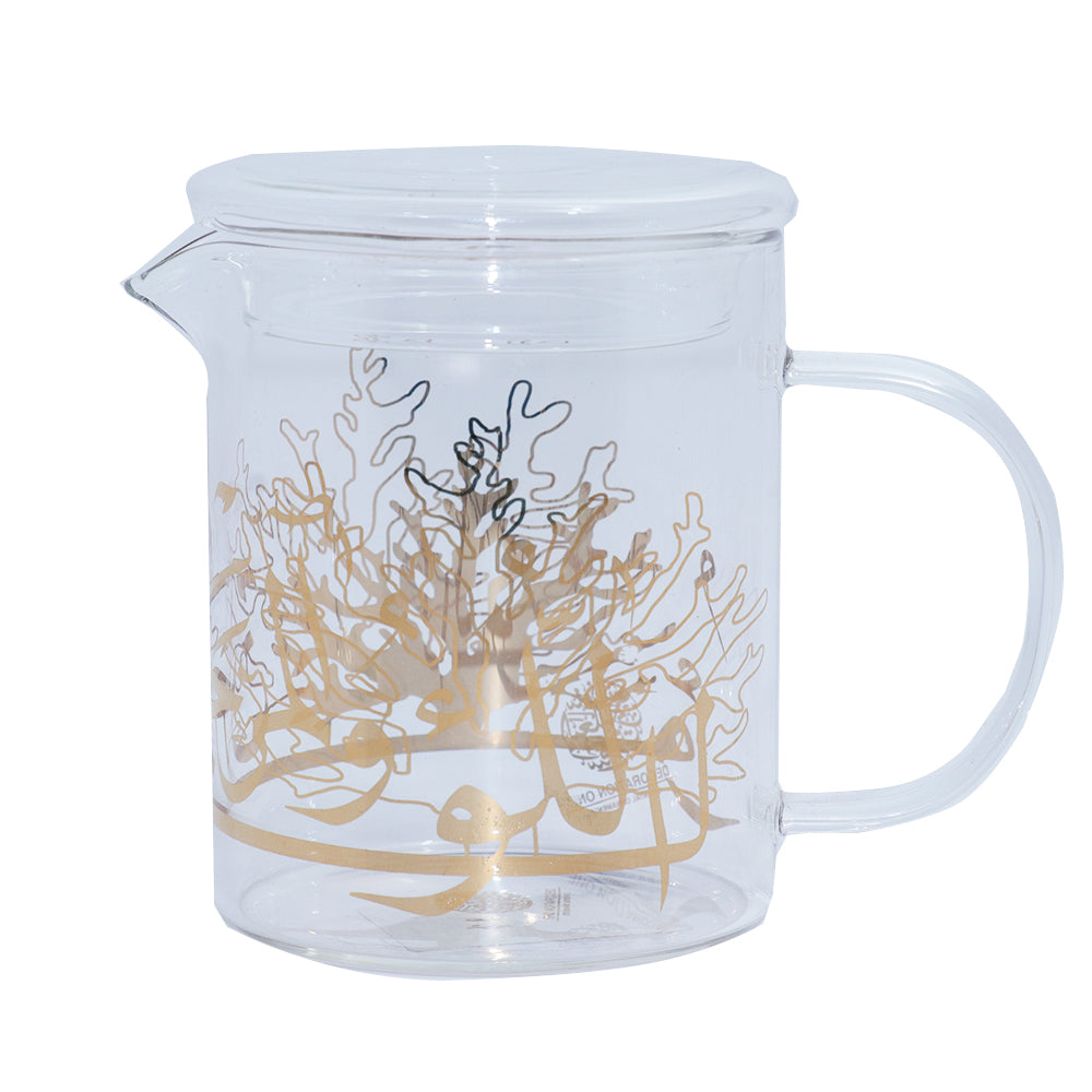 Glass milk cups, considering its name, is made by glass, and to be more specific, by high borosilicate glass. The glass has been fired under the temperature as high as 600 degrees Celsius. This is an eco-friendly teacup increasingly loved by people. Coral and Pearl designs adorn the cups, along with the Arabic Calligraphy. The collection is available in gold, platinum and white.