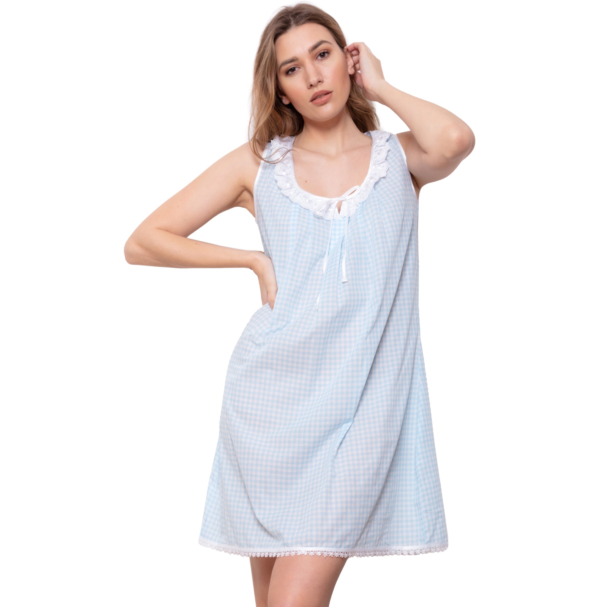 Cottonreal Women's Deda Pale Blue Sweetheart Chemise