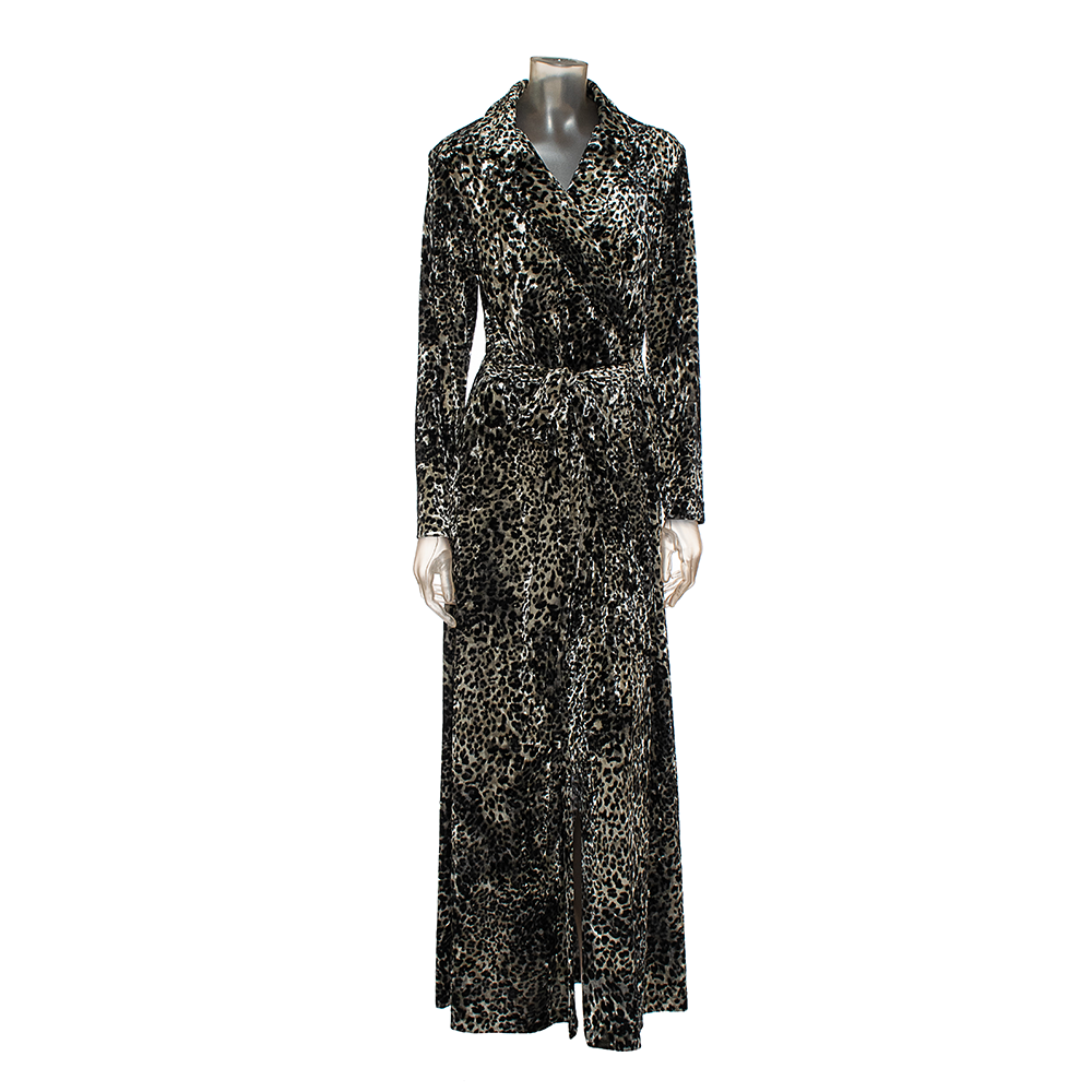 This long fuzzy velvet leopard print wrap with side pocket from Diamond Tea collection is a perfect choice for you. Belt loop and tie help secure a perfect fit around your waist. With the high quality velvet and delicate material, it will help to make you more relaxed and comfortable.