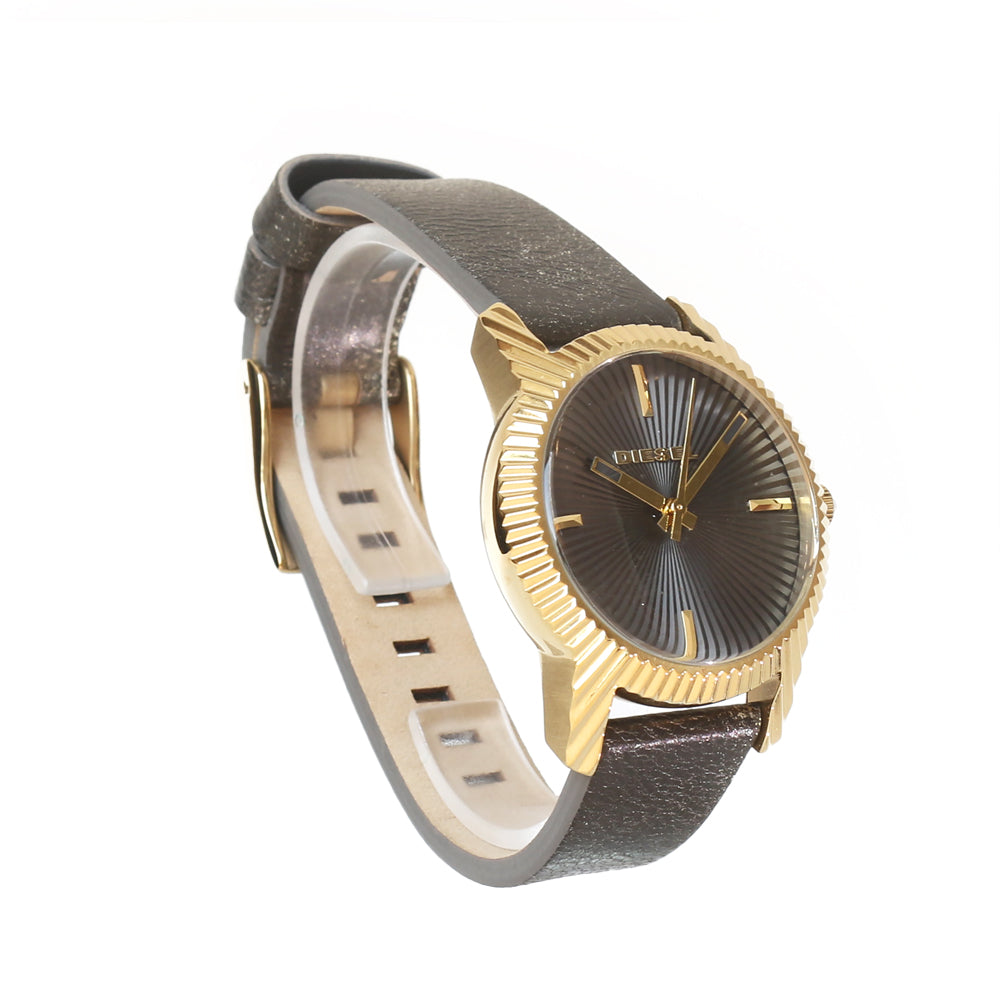 Diesel Ladies Watch Gold Plated Stainless Steel Case AnalogÊwith Black DialÊ& GrayÊLeather Strap