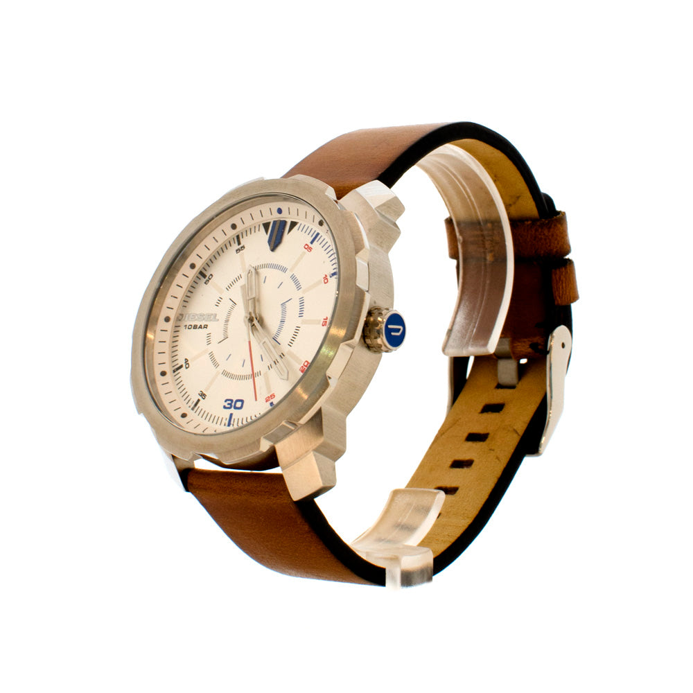 Diesel Men's Watch Brown Leather Strap Silver Case And Silver Dial