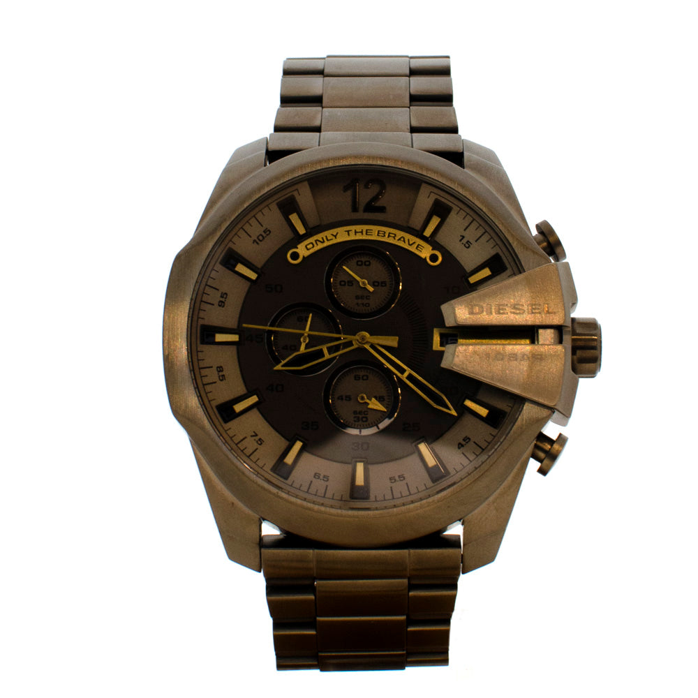 Diesel Men's Watch, Gun Metal Color Of Bracelet And Case With Gold Plated Indicator