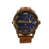 Diesel Men's Watch With 2 Time Zone & Dark Brown Leather Strap