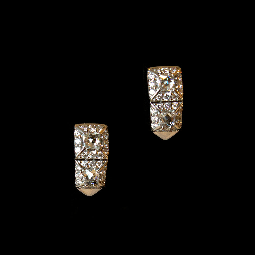 Earrings 18carat white gold grams 6.80 Brilliant cut diamonds g colour,vs ct 0.52 Rose cut diamonds g colour ct 0.58