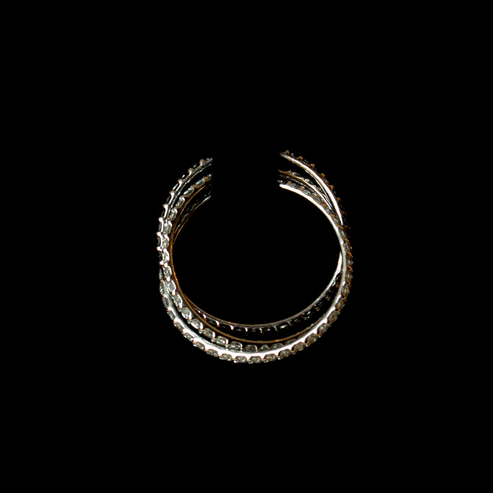 The Digo Ring 18 Carat White Gold is a stunning piece of jewelry that features a combination of two types of precious stones: brilliant cut black diamonds and brilliant cut diamonds. The ring is made of 18 carat white gold, which adds to its luxurious appearance and value. The design of the ring incorporates a total of 3.20 carats of black diamonds and 1.09 carats of brilliant cut diamonds, all set in a VS color grade. Brilliant cut black diamonds are a unique and sought-after type of diamond, known for their deep, rich color and brilliance. These diamonds are cut and faceted in a way that creates a highly reflective surface, giving them a dazzling sparkle. On the other hand, brilliant cut diamonds are a classic choice for engagement rings and other fine jewelry. Together, the brilliant cut black diamonds and brilliant cut diamonds in the Digo Ring create a striking contrast and add to its overall beauty. The 18 carat white gold setting provides the perfect backdrop for both types of diamonds to shine. The Digo Ring 18 Carat White Gold is a unique and luxurious piece of jewelry that showcases the beauty of both brilliant cut black diamonds and brilliant cut diamonds. SPECIFICATIONS