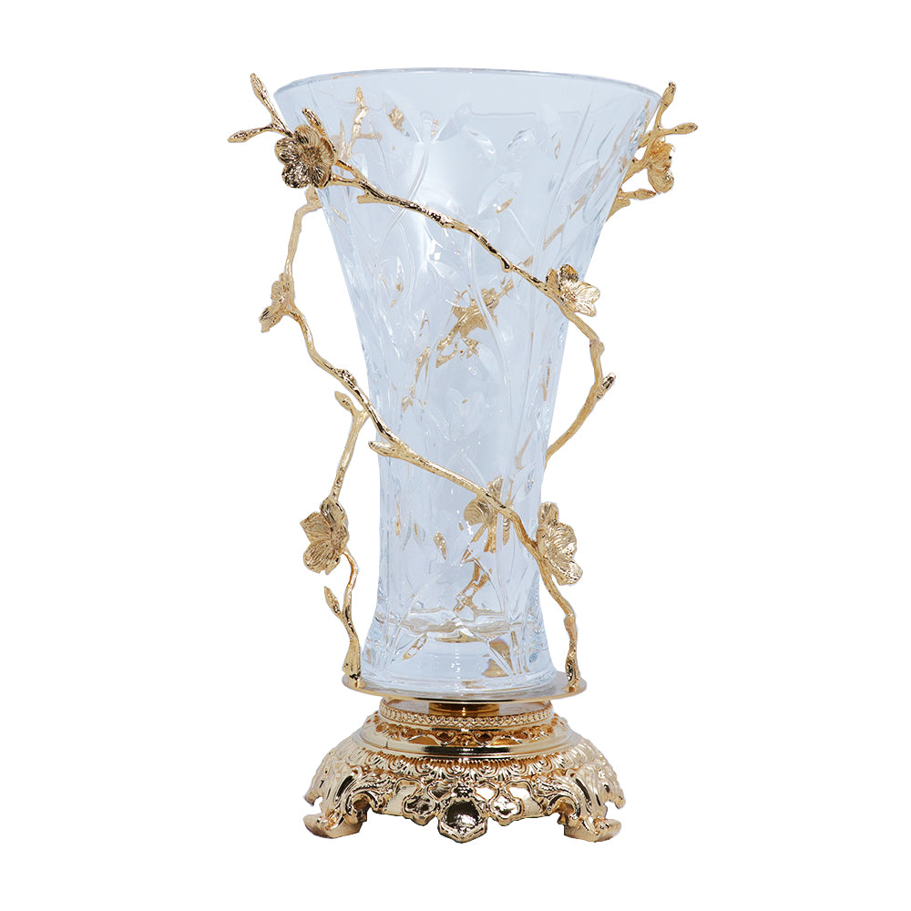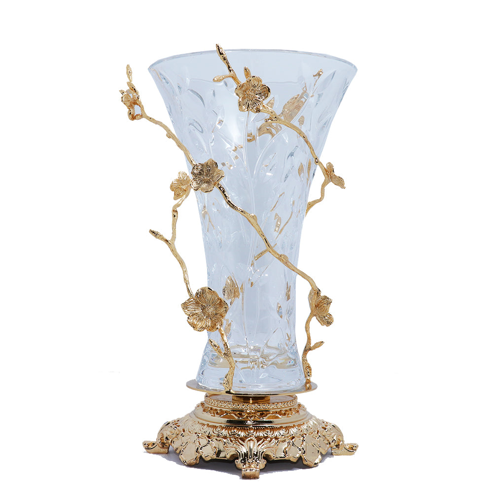This Classic Crystal Vase With Golden Base is a True exmaple of Italian Carftsmanships, It covered with a unique Golden flowver design .