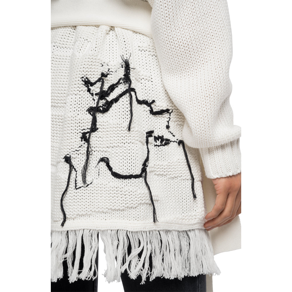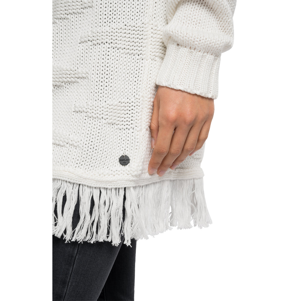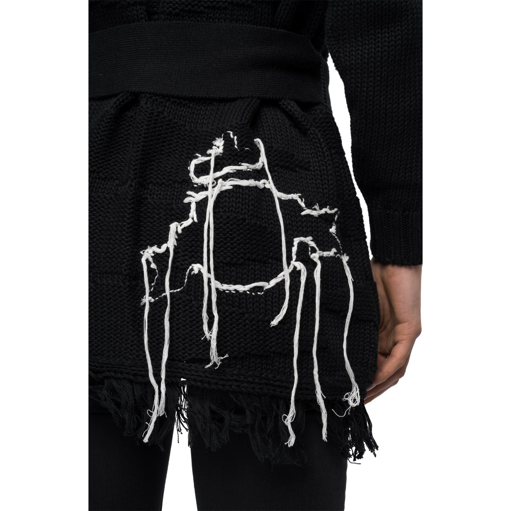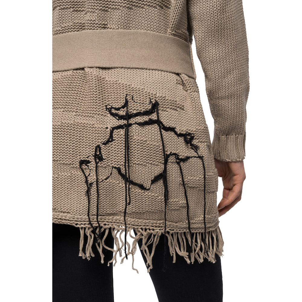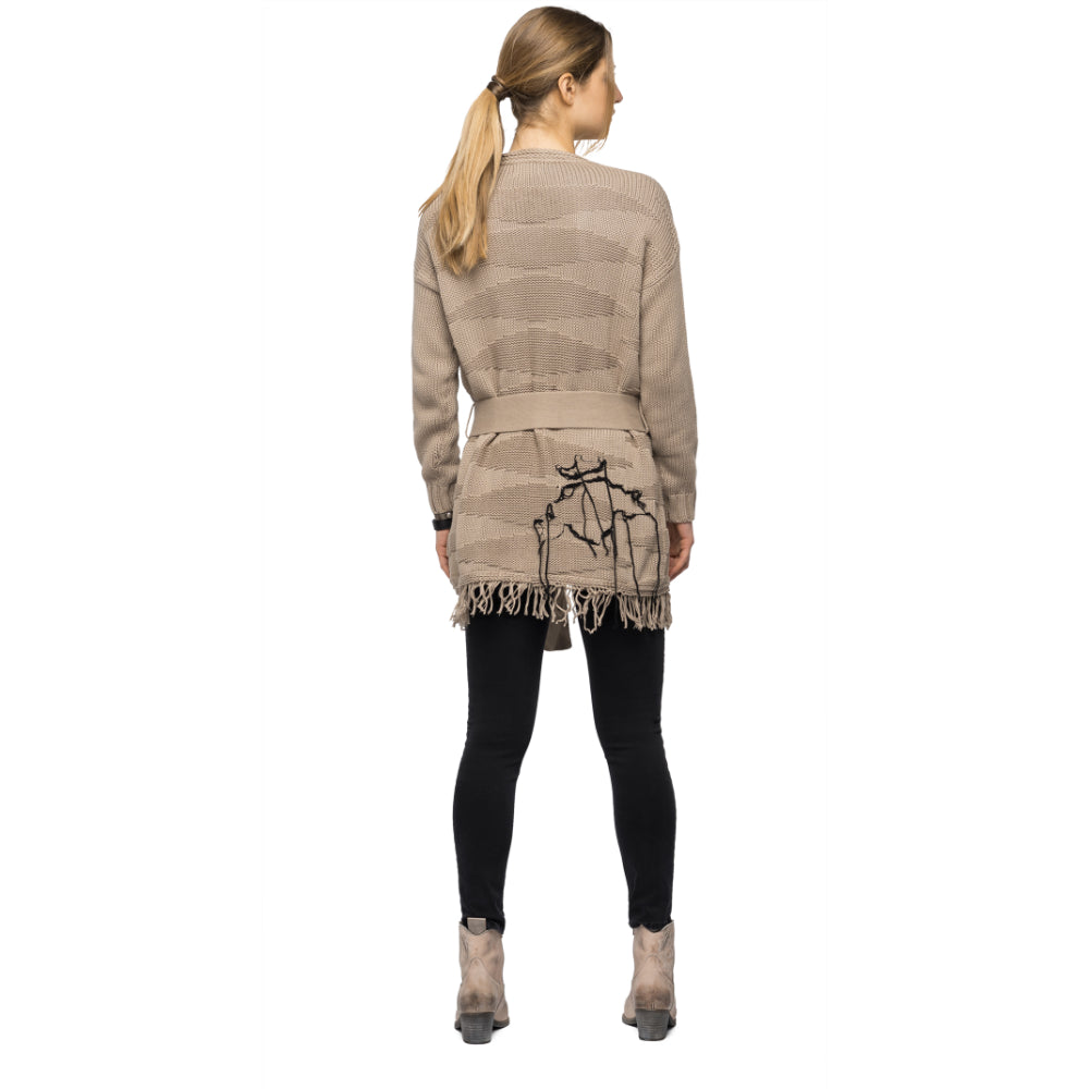 Women's open cardigan in solid-coloured cotton, regular fit with long sleeves and slightly dropped shoulders, elasticated rib on the cuffs, REPLAY logo embroidered with fringes at the back, tone-on-tone belt tied at the waist, REPLAY customized metal plate at the front of the hem, hem with fringes.