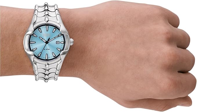 The Diesel Vert Gents Luminous Blue Dial Stainless Steel Watch is a stylish and functional accessory for men. With a 44mm stainless steel case, it is both durable and visually appealing. The luminous blue dial is eye-catching and adds a pop of color to the overall design. The three hands and date window make it a practical choice for daily wear, while the stainless steel strap adds a touch of elegance. Additionally, the luminous hands and numbers make it easy to read the time even in low-light settings. This watch is a perfect blend of style, functionality, and durability, making it a must-have for any man's watch collection.