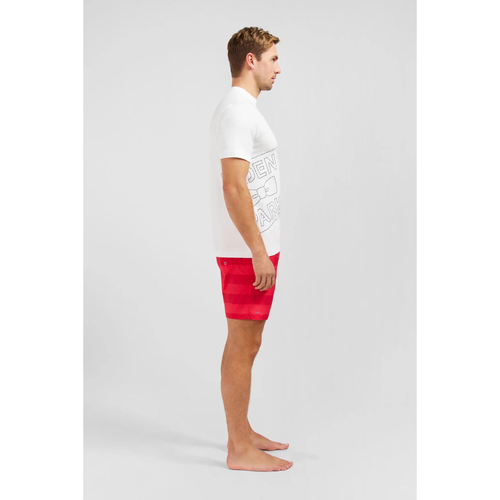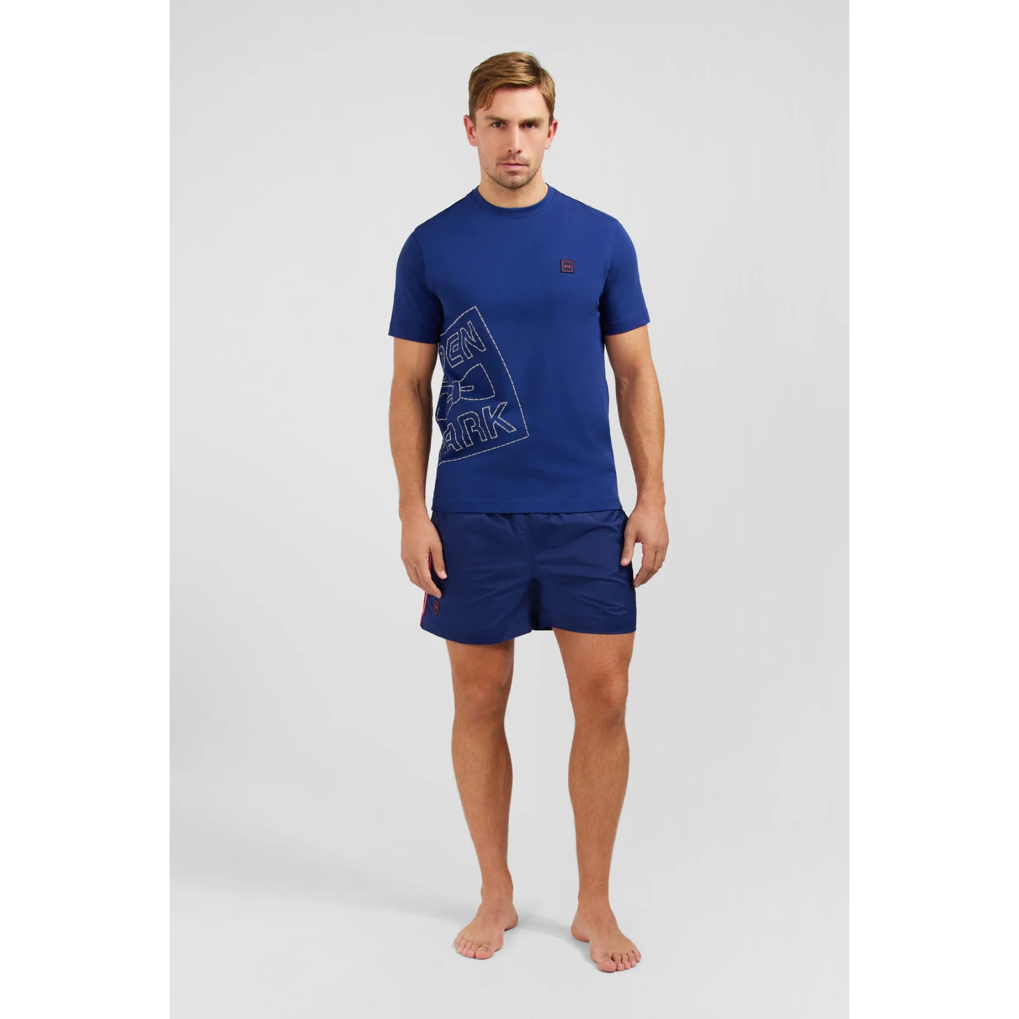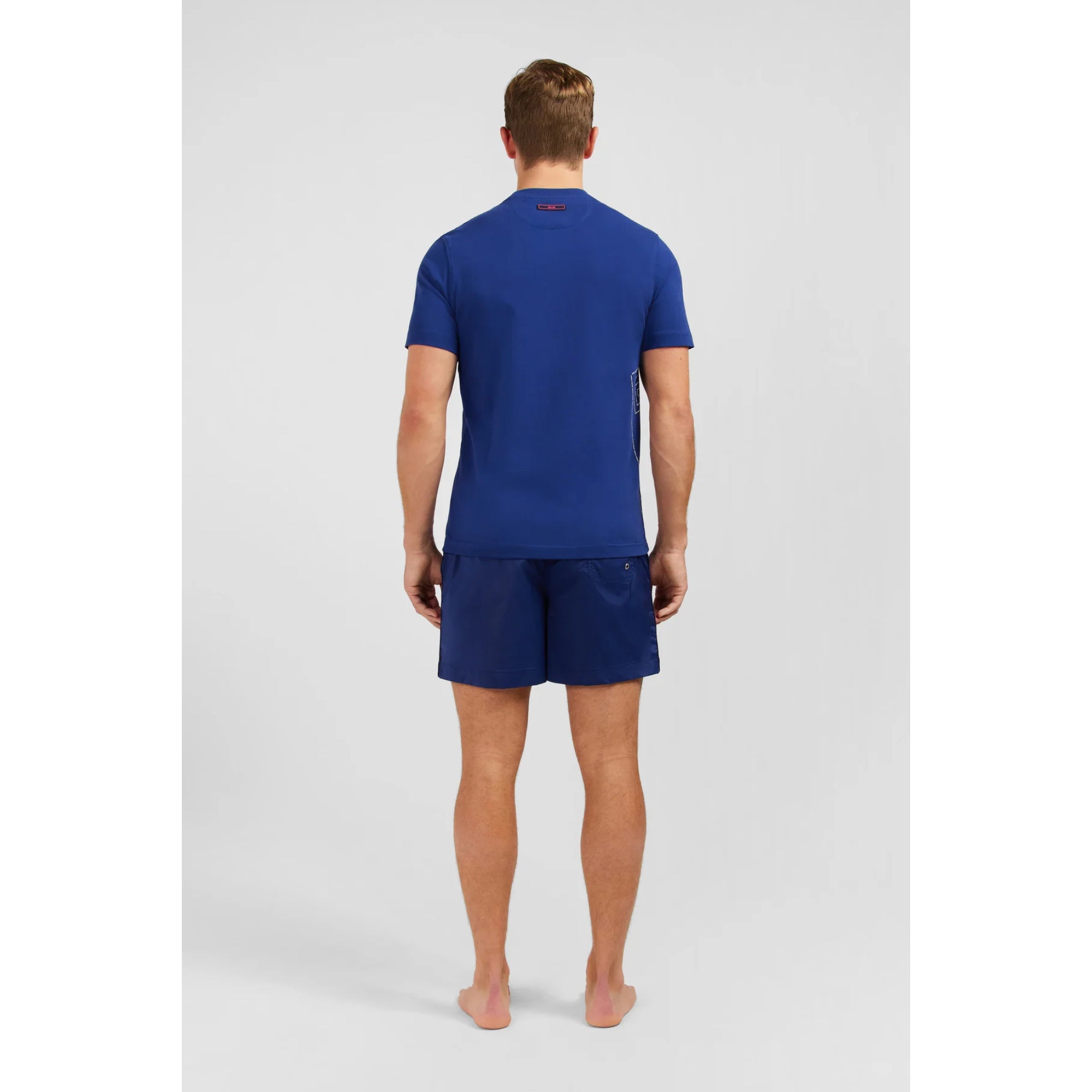 Eden Park Printed T-Shirt is a stylish and comfortable t-shirt that is perfect for casual wear. This t-shirt is made from soft cotton jersey material, making it lightweight and breathable. The regular fit design ensures a comfortable and relaxed fit for everyday wear. The t-shirt features a ribbed crew neck and short sleeves, providing a classic look. It also includes a square Eden Park badge on the chest, adding a touch of sophistication and branding to the design. The front of the t-shirt showcases a bold Eden Park print, adding a pop of color and style to the overall look. It is a two-tone print that stands out and adds personality to the t-shirt. Lastly, the t-shirt is completed with a two-tone Eden Park silicone badge on the back. This badge adds the final touch to this stylish t-shirt, highlighting the brand and making it a must-have for Eden Park fans. Overall, the Eden Park Printed T-Shirt is a versatile and trendy piece of clothing that is perfect for everyday wear. It combines comfort, style, and brand identity, making it a great addition to any wardrobe.