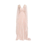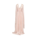 The Gemy Maalouf Women's Blush Long Dress is a truly exquisite style of dress that is sure to make heads turn. It features a V-neckline and is fully pleated, with a beautiful flared chiffon skirt complete with intricately draped details. The lightweight construction ensures the dress is comfortable to wear all night long, while the soft blush color brings a romantic and feminine touch to the elegant silhouette. The dress is perfect for any special occasion, from day to night, whether it be a wedding, black tie event, or a special date night. Its timeless style is sure to make an impression. The dress is sure to be a favorite in any wardrobe, and will easily flatter any figure. SPECIFICATIONS