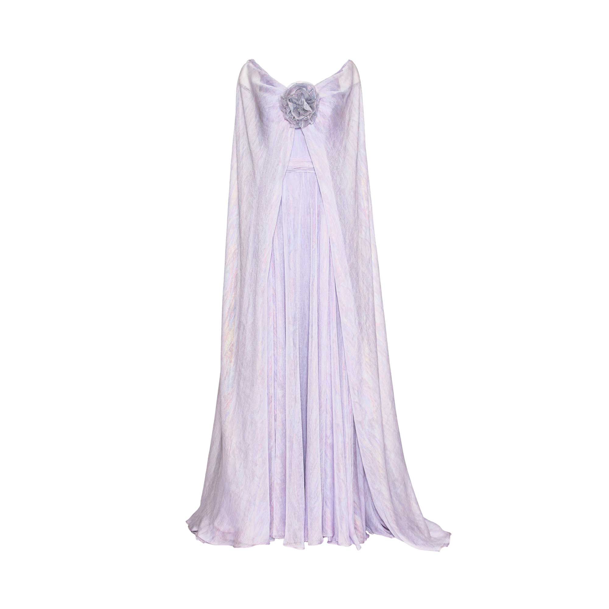 If The Gemy Maalouf Women's Lilac Long Dress is the epitome of sophisticated elegance, this one is the picture of femininity and grace. Perfect for a special occasion, the scallop neckline is framed by a flattering tonal waistband and delicate tonal cape with floral appliqué. The lightweight chiffon beautifully wraps around the frame, cradling the figure with a perfect fit for a style that is both timeless and romantic. With this statement dress, you'll look stunning and confident while reveling in its breathtaking details and luxurious design. SPECIFICATIONS
