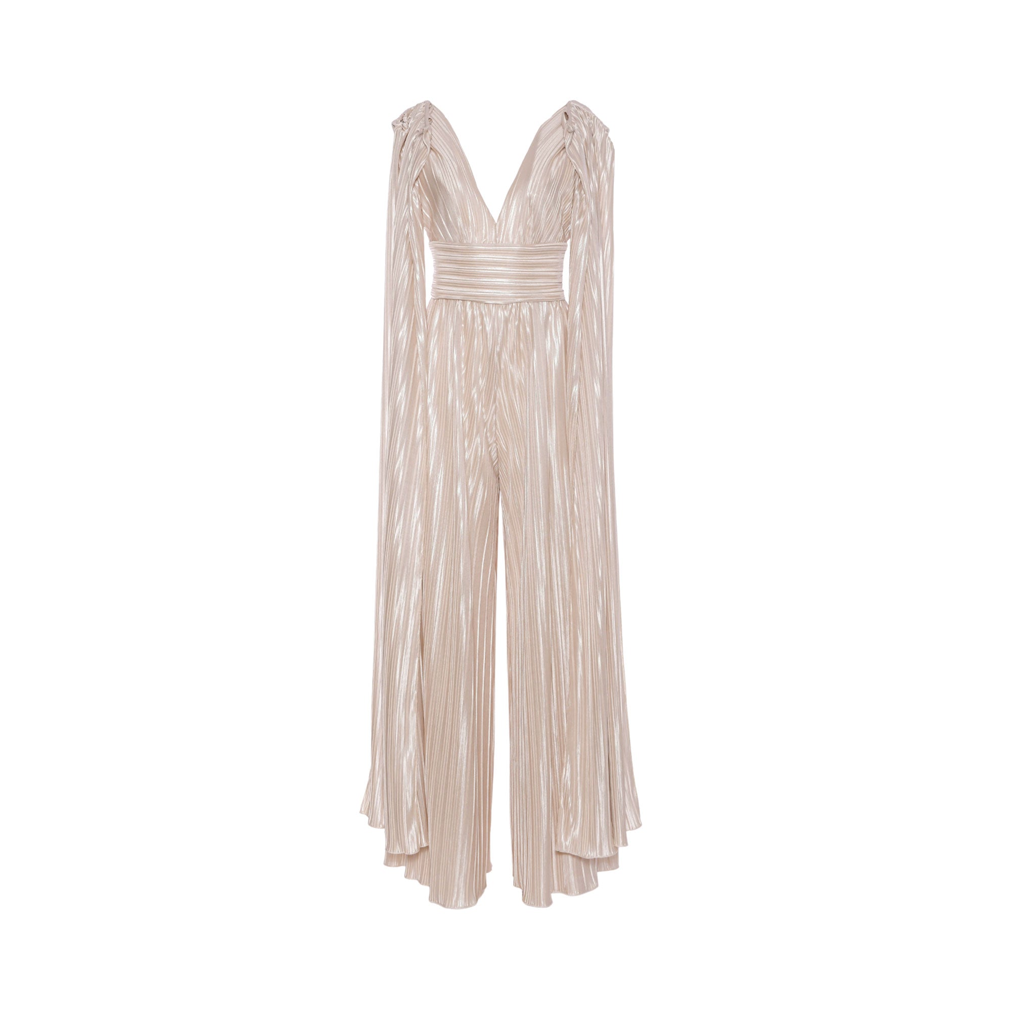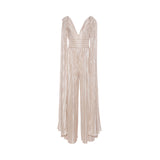 The Gemy Maalouf Women's Jumpsuit is a perfect combination of sophisticated and modern style. Its deep v-neckline adds a touch of drama and class to the overall look, while the flare cut legs and cape-like design from the back create a unique silhouette that is sure to turn heads. This jumpsuit is perfect for any special occasion, whether formal or more casual. The stretch fabric ensures a comfortable fit all day long, and the color makes it perfect for any attire. With its triangle-shaped pattern, this jumpsuit emphasizes your curves in the best way possible. You can pair it with statement jewelry and strappy sandals for a chic look that is perfect for a night out on the town. The Gemy Maalouf Women's Jumpsuit is sure to be a wardrobe staple for any fashionista. SPECIFICATIONS