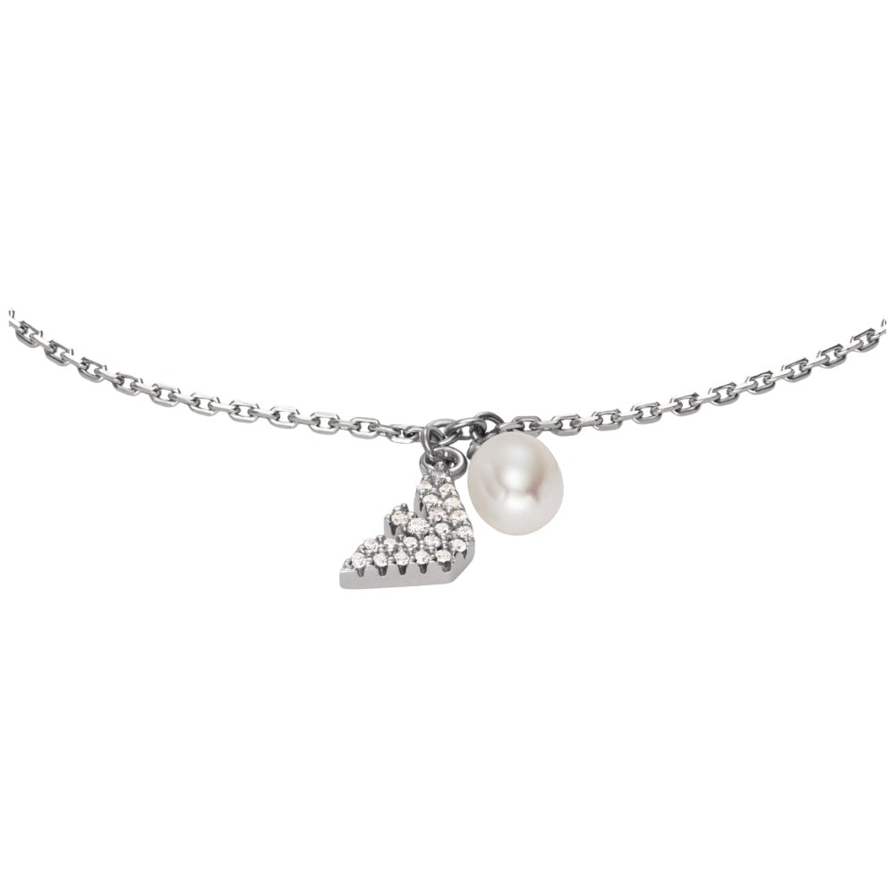 Emporio Armani Ladies Logo and Pearl Sterling Silver Bracelet