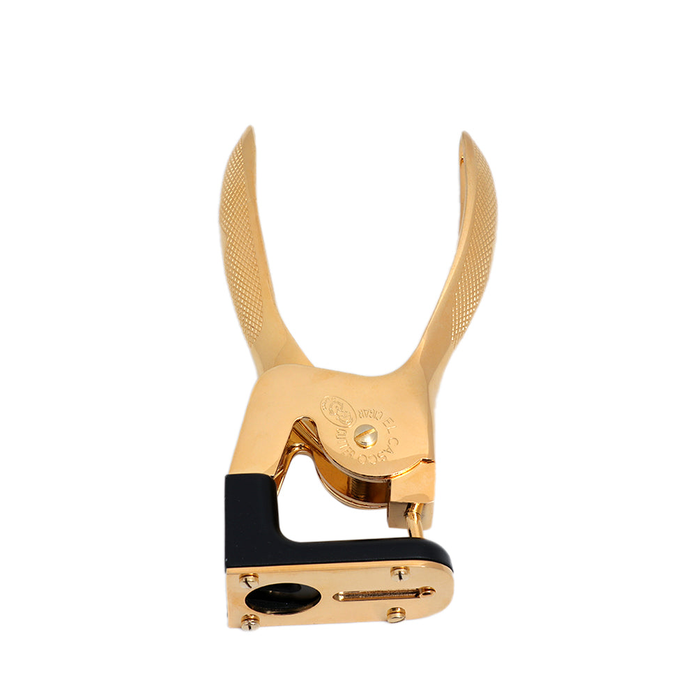 "Plier cigar cutter in 23k gold plated and black lacquered finish.