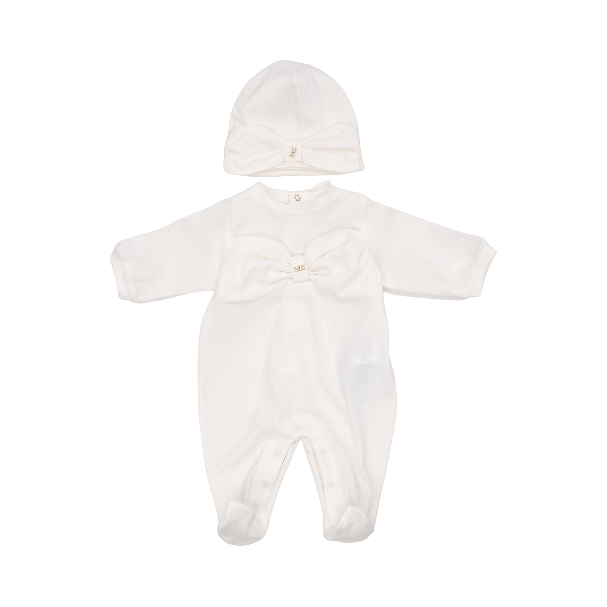 Elisabetta Franchi Kids New Born Girl's Two-Piece Bow-Detail Footed Romper and Hat Set