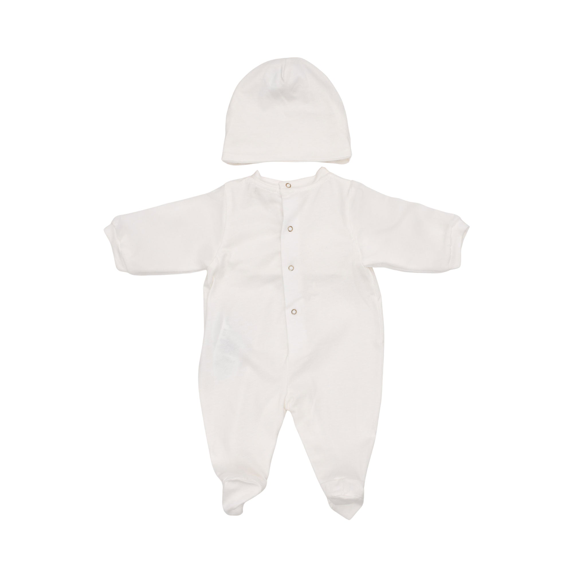 Color & Material: The set is a clean, solid white or ivory. It appears to be made from a comfortable cotton jersey or interlock knit.