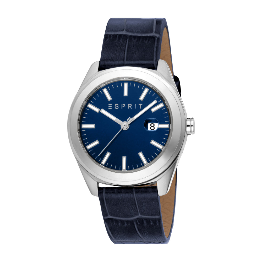 ESPRIT Men's Silver Color Watch with Dark Blue Dial and Leather Strap