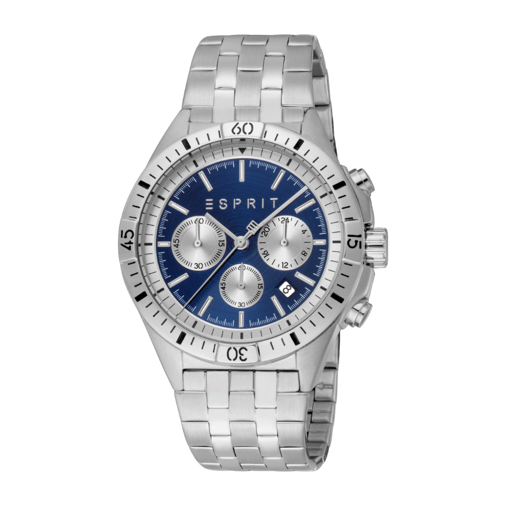 ESPRIT Men's Chronograph Watch with Silver Color Case and Dark Blue Dial on Stainless Steel Metal Bracelet - 10 ATM