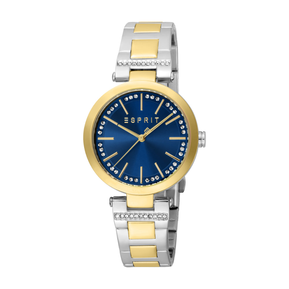 ESPRIT Women's Two Tone Silver and Gold Watch with Dark Blue Dial