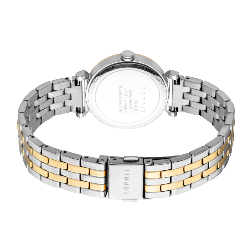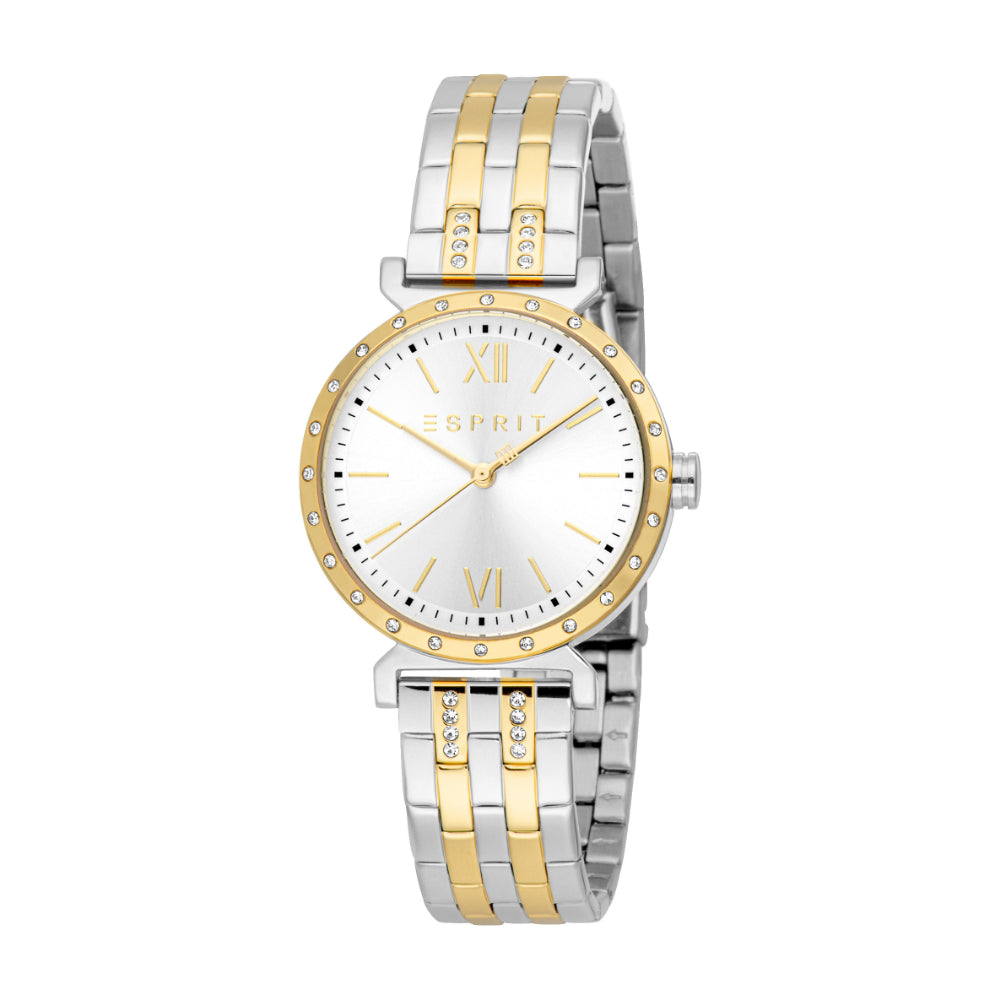ESPRIT Women Watch, Two Tone Silver & Gold Color Case & Metal Bracelet Silver Dial, 3 Hands, 5 ATM