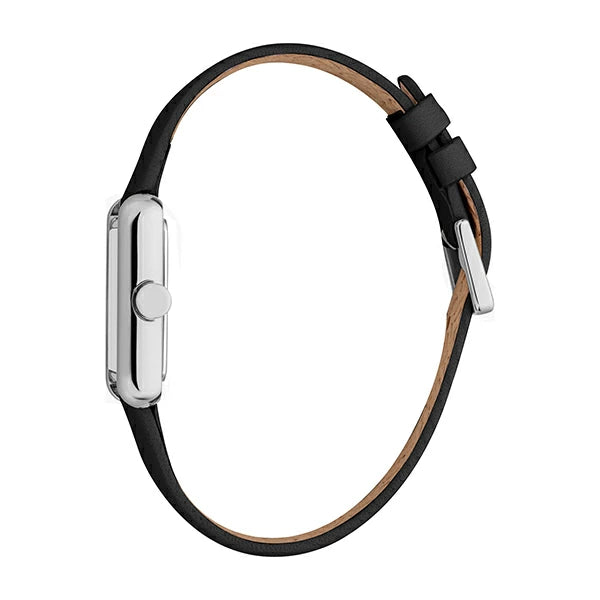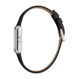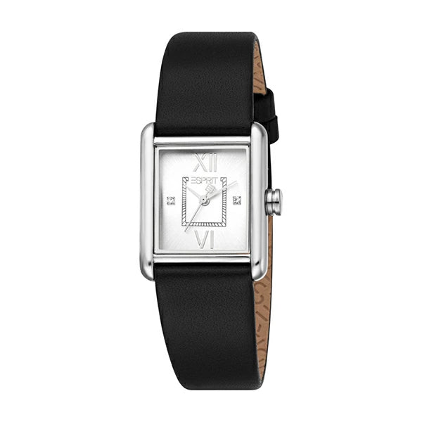 Esprit Ladies Rectangular Silver-Tone Watch with Black Leather Strap